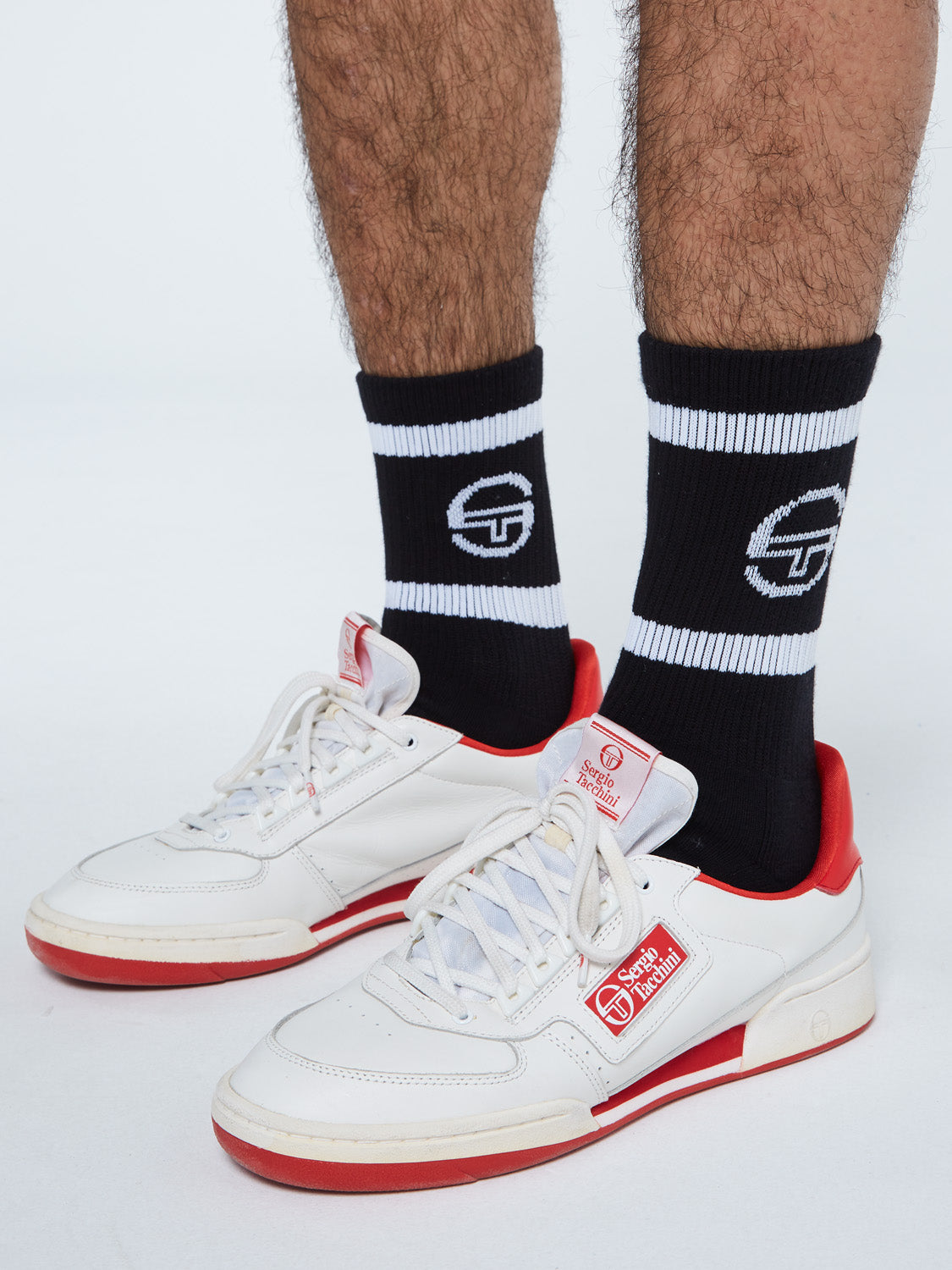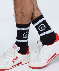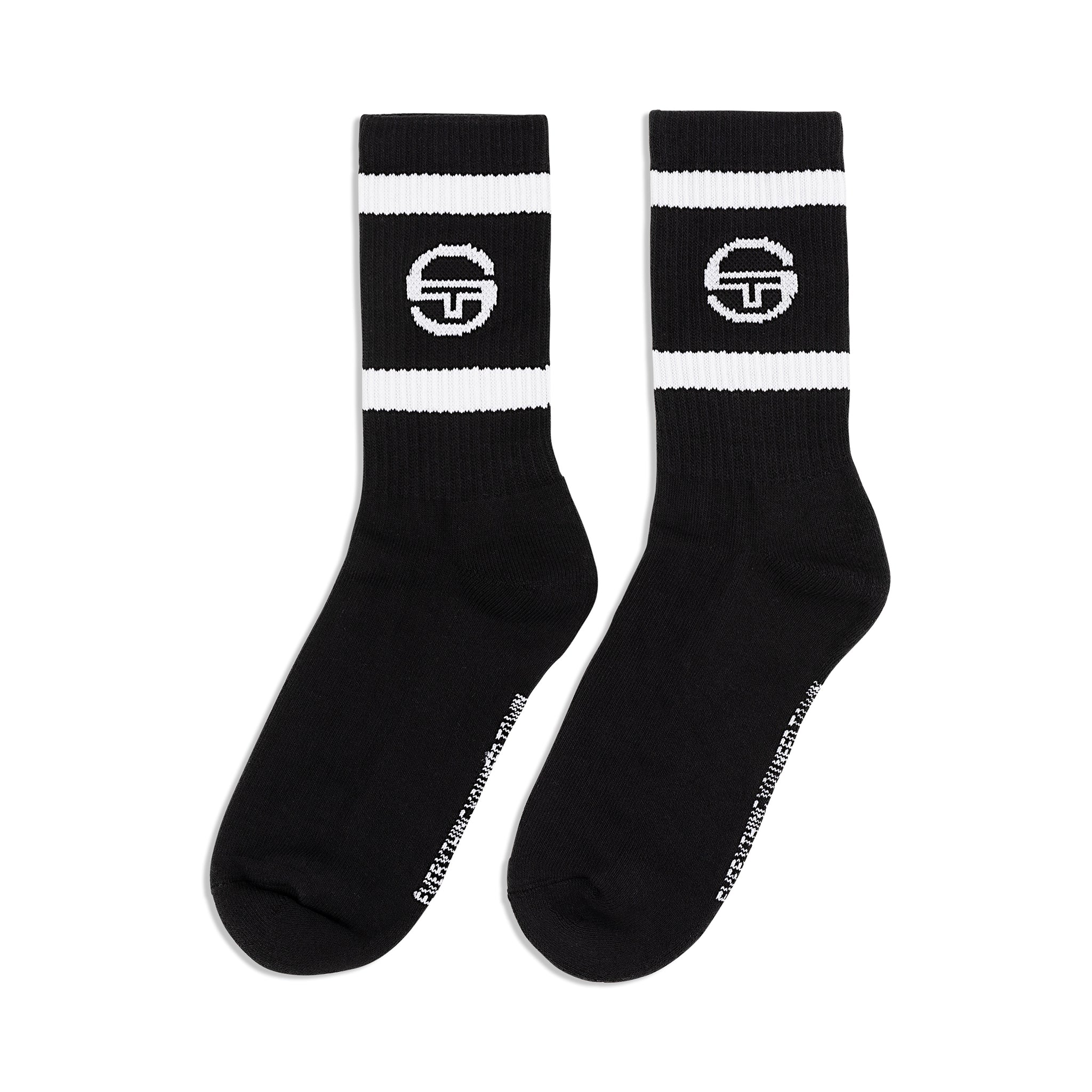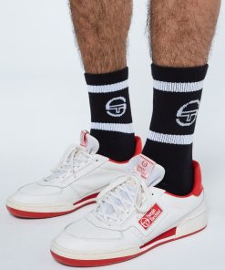 An on-and-off-court essential, the crew-length Tennis Sock features Sergio Tacchini’s iconic ‘ST’ monogram logo at the athletic-ribbed upper and the brand’s ‘Everything You Need to Win’ slogan at the cushioned footbed.