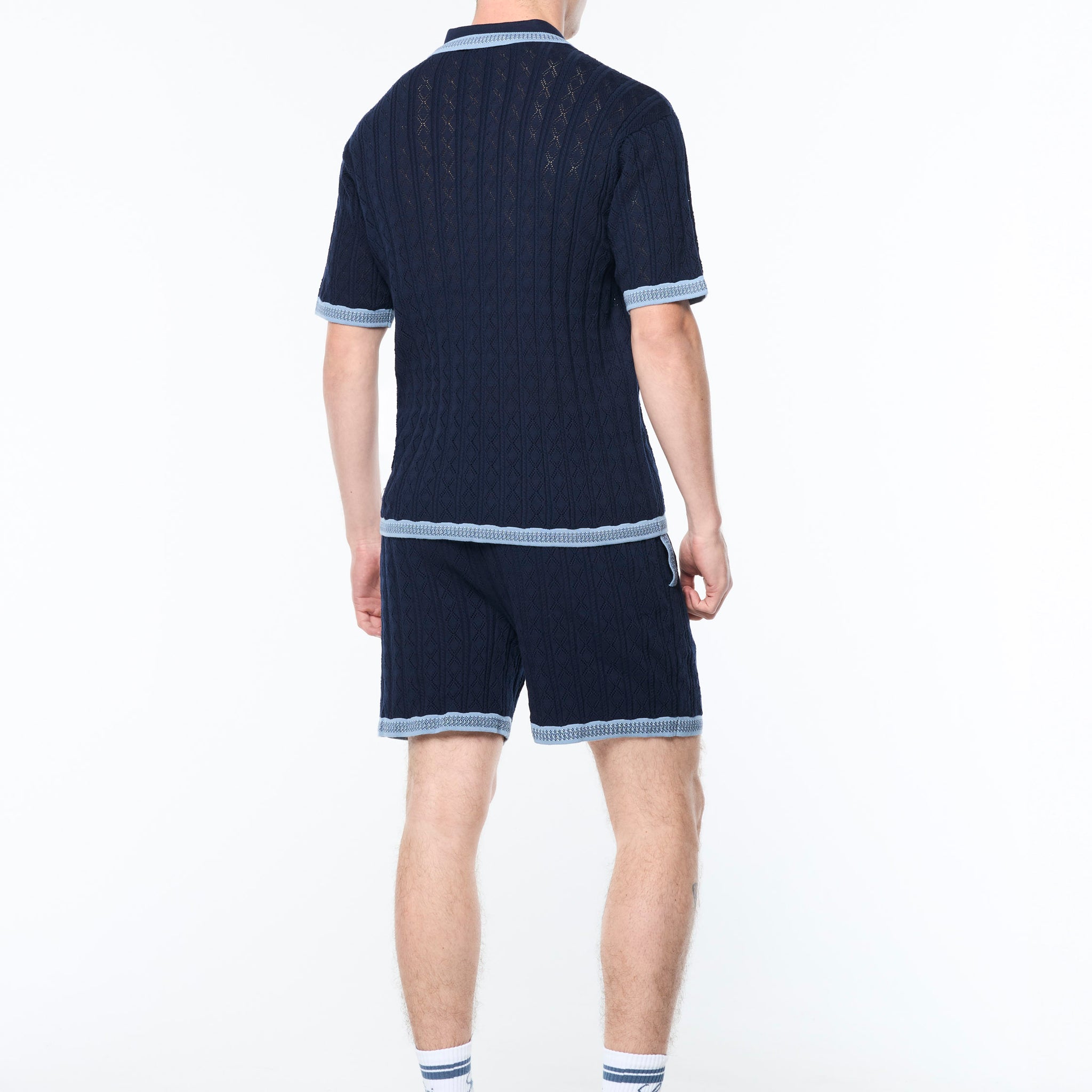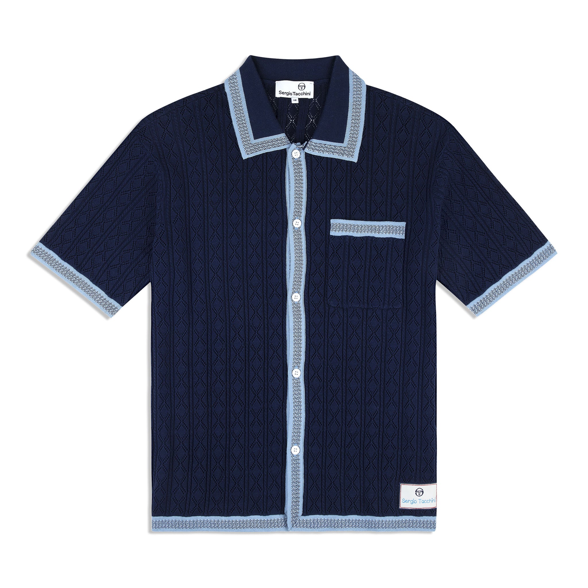 A luxurious take on vintage resort leisurewear, the Aldo Pointelle Polo is crafted from premium high-twist cotton yarn using an airy open pointelle-knit technique that’s lightweight, breathable, and exceptionally soft to the touch. Designed with exquisite attention to detail, this elevated polo is complete with jacquard-knit stripe trims and a custom Sergio Tacchini label at the hem.