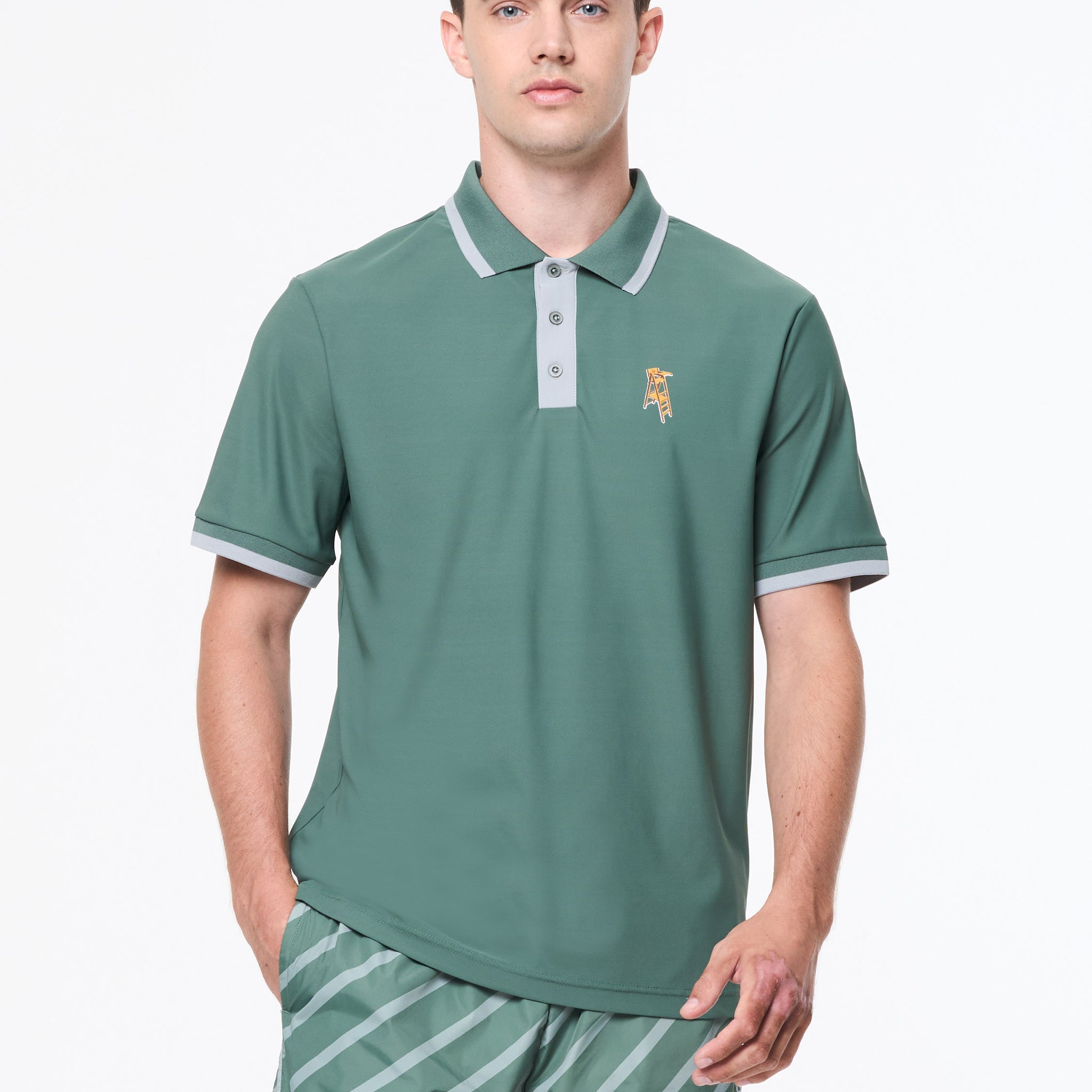Score style points in the Arbitro Polo, crafted from lightweight, breathable micro piqué to keep you cool under pressure—on or off the court. A rib-knit collar and cuffs are tipped with contrast stripes, while a custom tennis umpire chair graphic sits at the left chest.