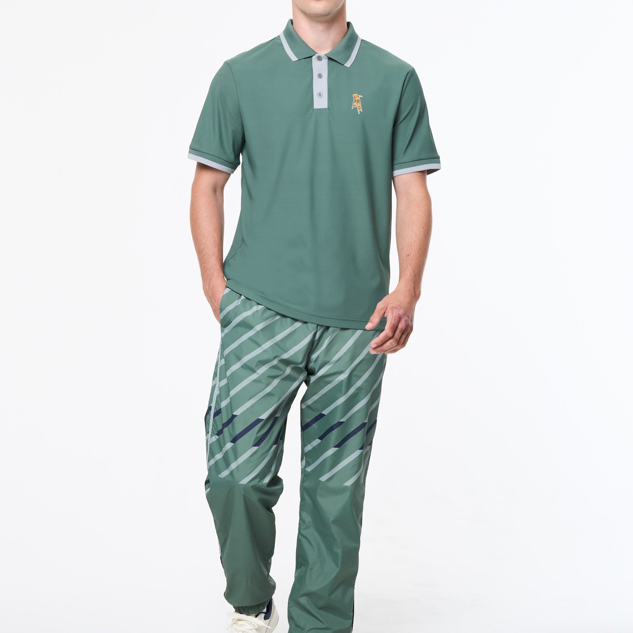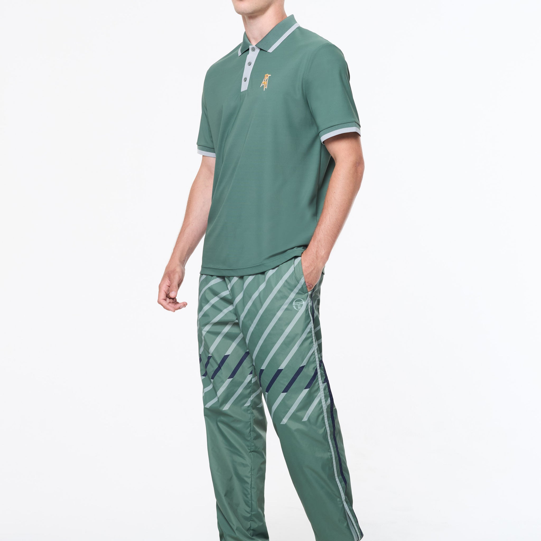 - Custom Sergio Tacchini umpire chair artwork at left chest