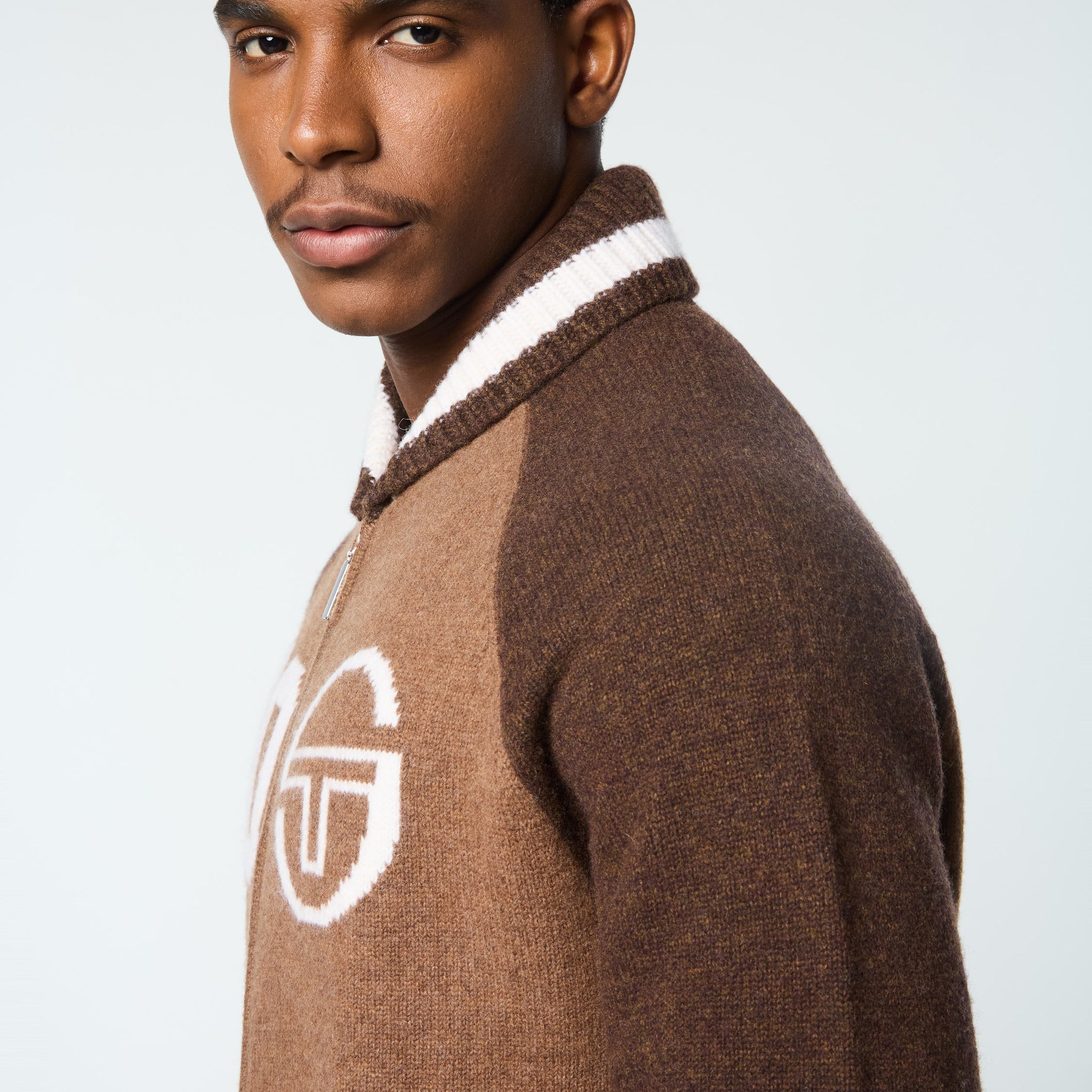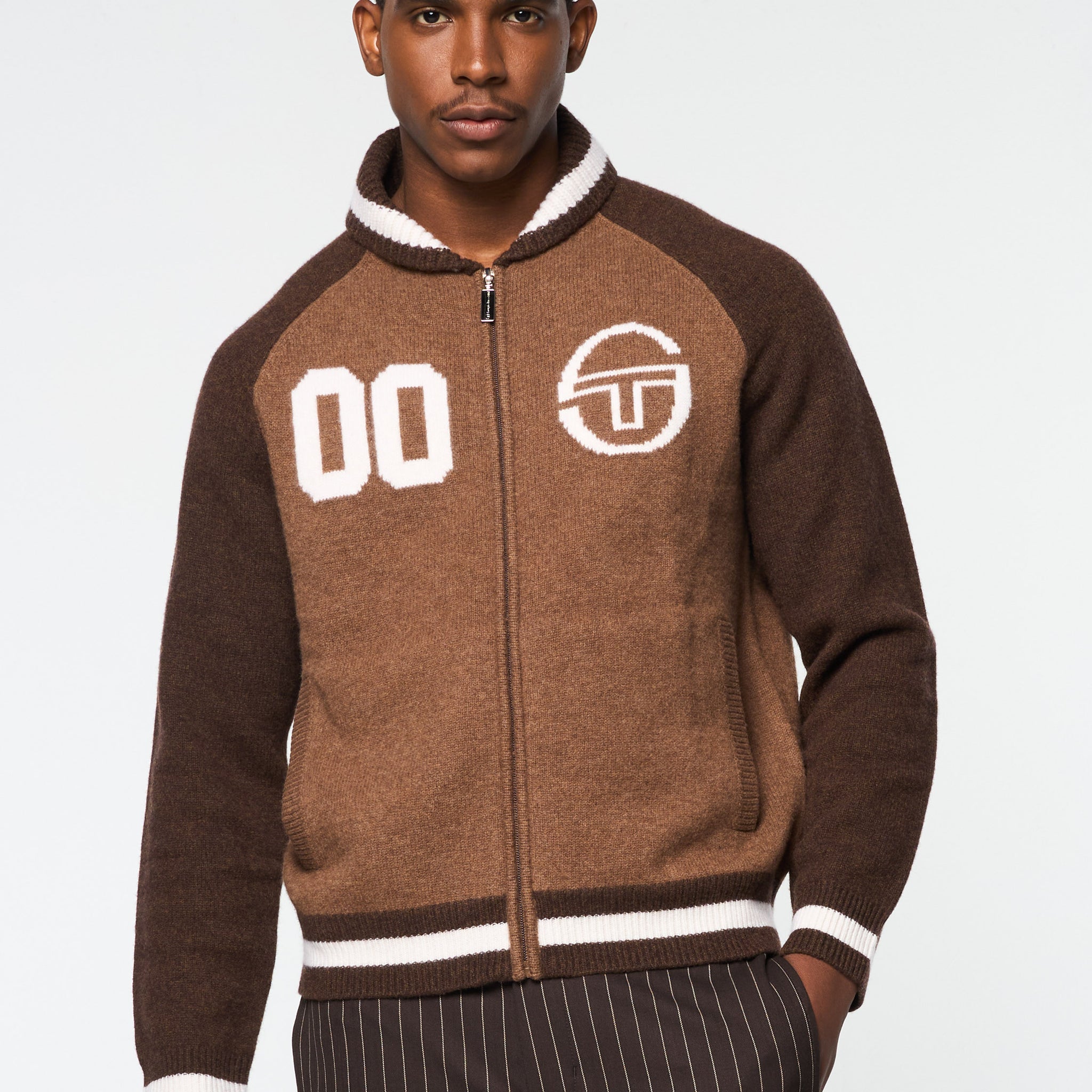 Elevate your style with the Atella Shawl Cardigan, crafted from exceptionally soft Merino wool with a heavier-weight handfeel to keep you cozy through cooler weather. Designed with exquisite attention to detail, this luxe full-zip cardigan is complete with intarsia-knit Sergio Tacchini artwork, contrast sleeves, and striped rib-knit trims.