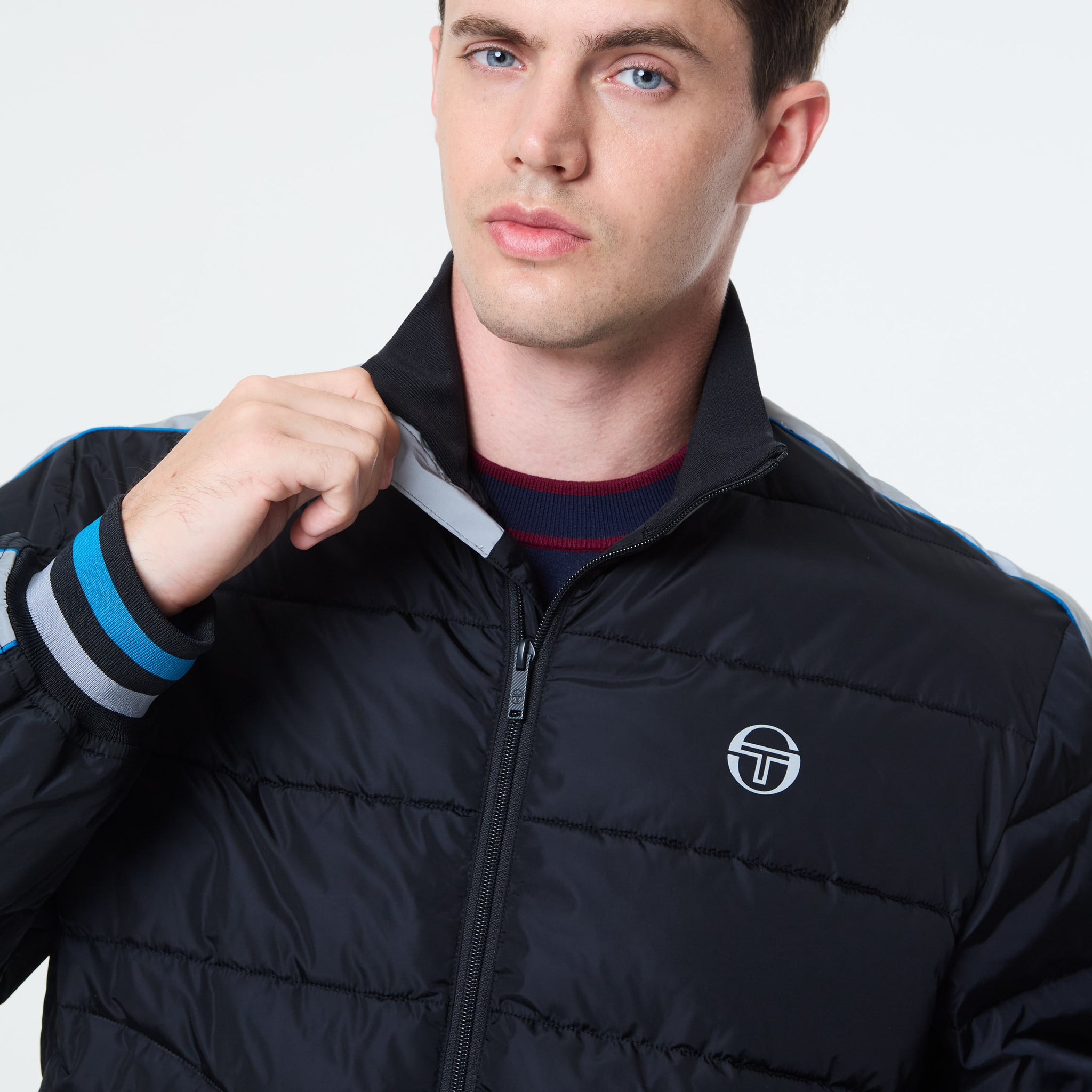 Engineered for warmth with elevated style. The Caldo Puffer Jacket is cut from durable nylon with all-over insulated baffles for superior comfort in colder temps. Featuring reflective panels and contrast piping accents down the sleeves, this sleek puffer is finished with striped rib-knit trims and zip pockets for secure storage. Designed to stand out—day or night.