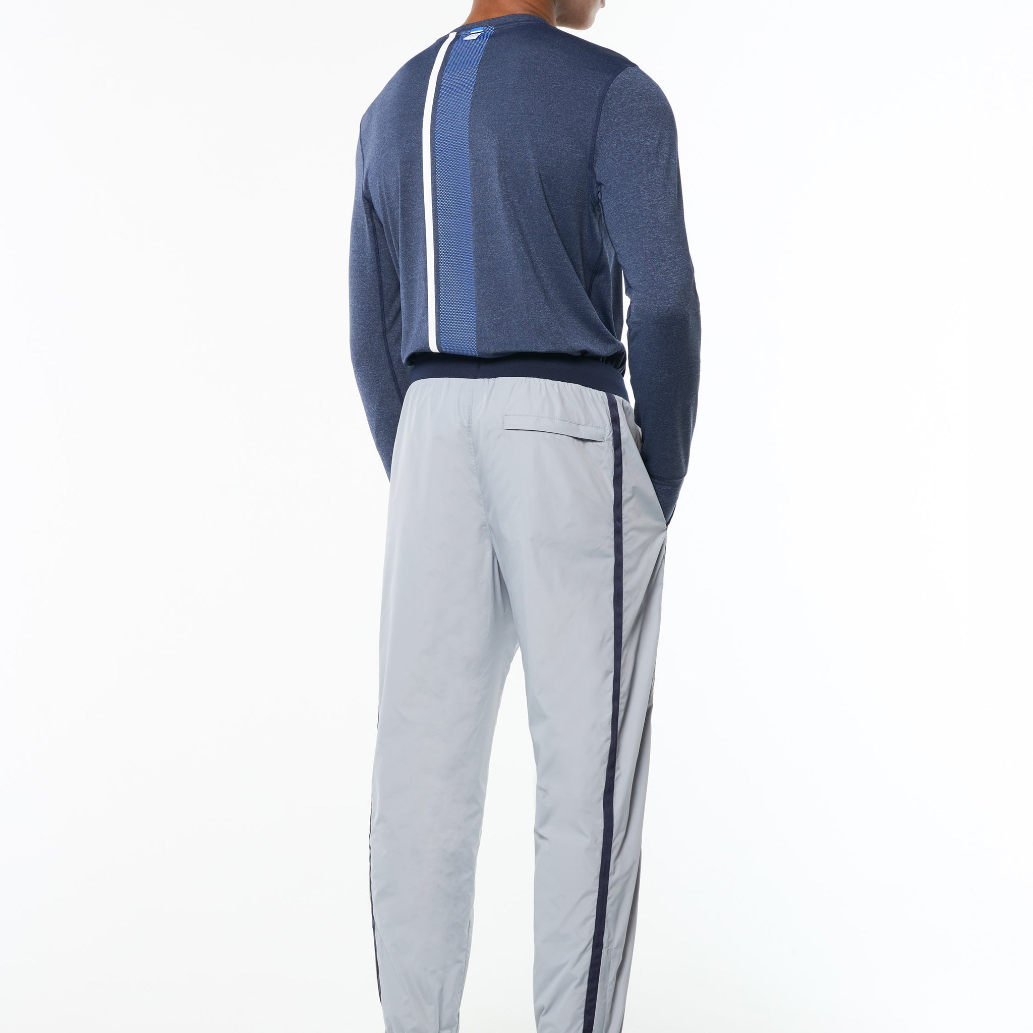 Sport meets statement. The Campo Court Track Pant is crafted from crisp and lightweight nylon taffeta with a breathable mesh lining—built to move on and off the court. Contrast taping down the legs delivers a sporty punch, while a comfortable rib-knit waistband ensures a secure fit.