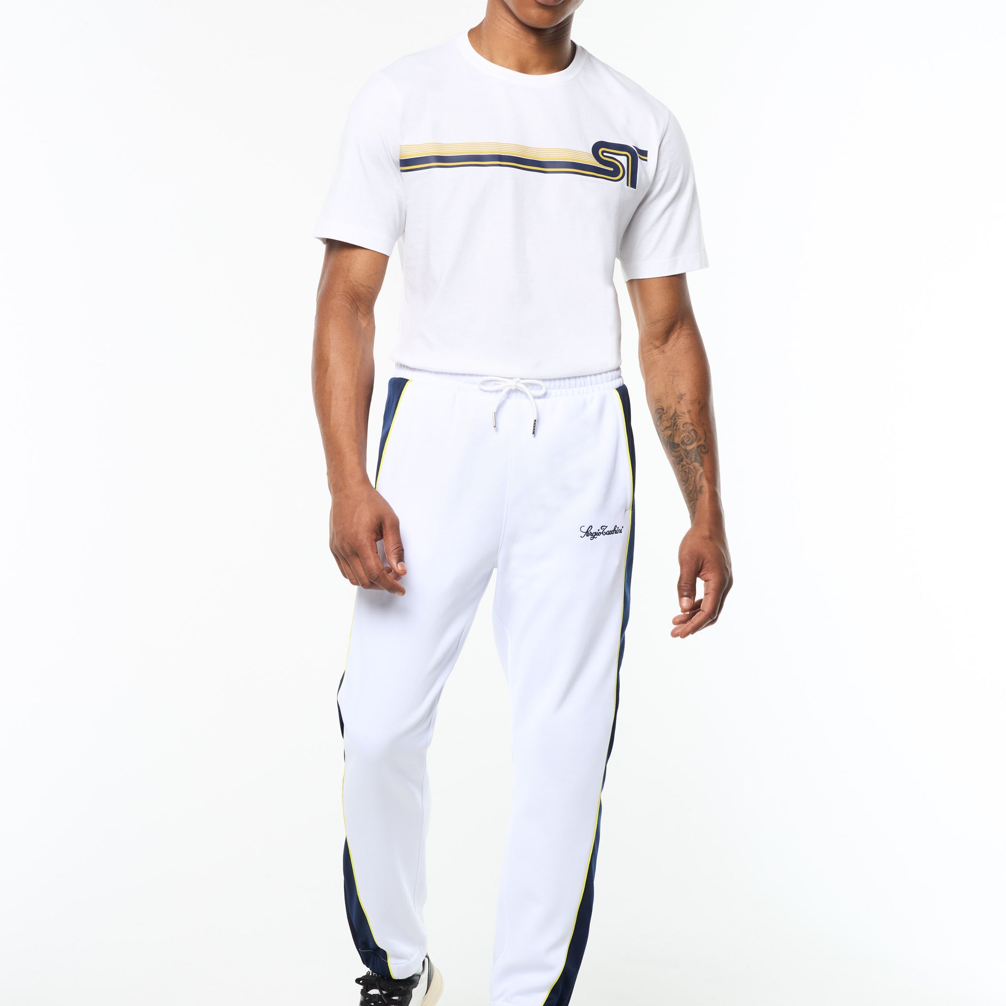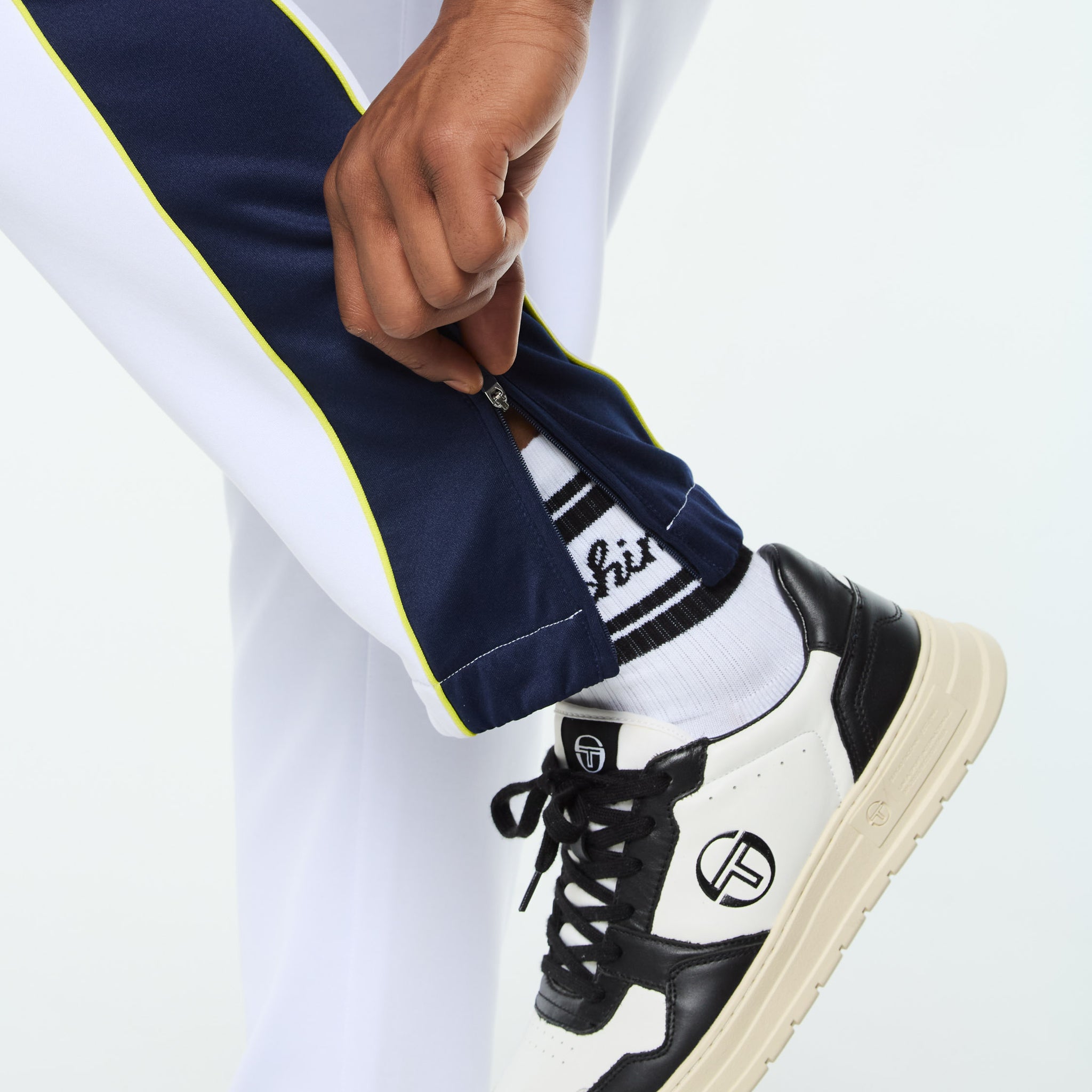 Where sport meets statement. Our Corsa Track Pant takes cues from vintage racing kits—revved up with modern edge. Crafted from soft yet structured double-face knit fabric, these premium track pants feature bold color-blocking and piping accents down the legs, a comfortable drawstring waistband, and adjustable ankle zips for on and off-court convenience.