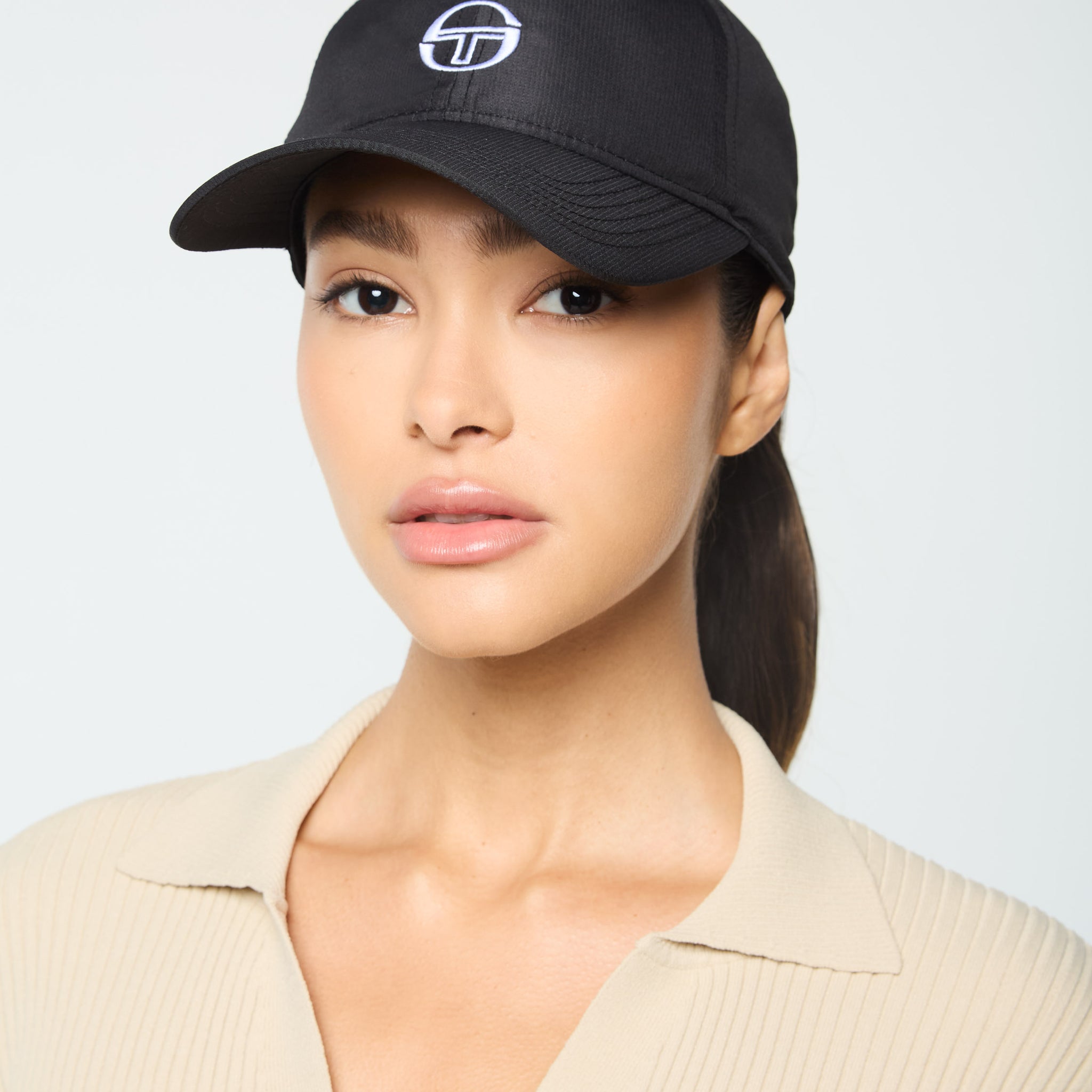 Keep your cool from the court to the street with our low-profile Court Hat. Made of lightweight and durable ripstop, this classic 6-panel cap features embroidered Sergio Tacchini logos, a curved visor, and an adjustable velcro strap for the perfect fit.