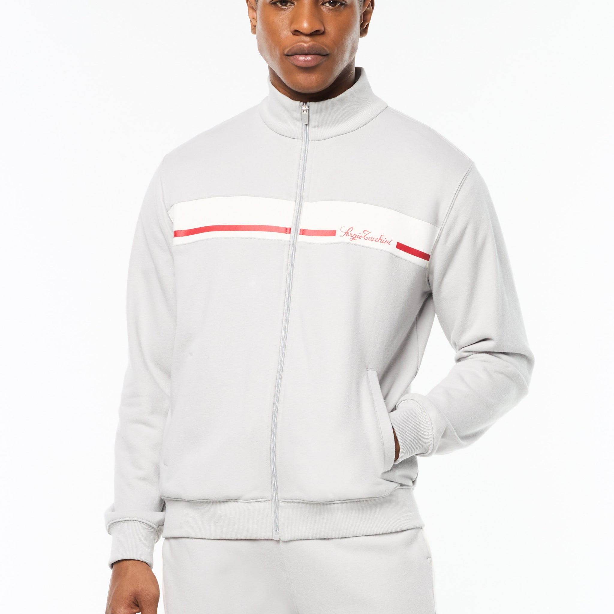 Heritage sport styling, elevated for your everyday. The Cursivo Track Jacket is crafted from soft cotton French terry for a plush, breathable feel that moves with you. A bold contrast chest panel with vintage-inspired Sergio Tacchini script adds a heritage hit, while ribbed trims and welt hand pockets keep things refined and functional.