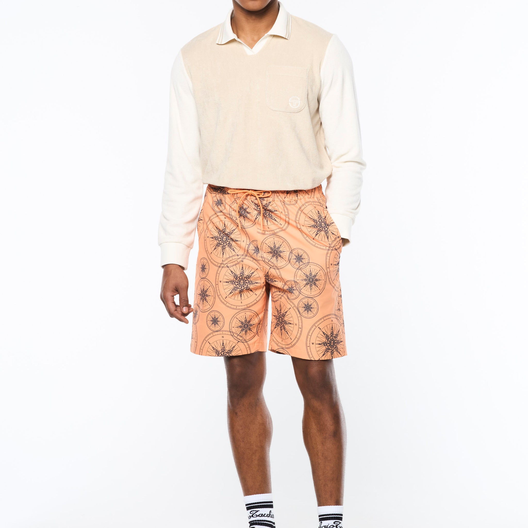 Dive into style with the Falito Swim Short, featuring a seasonal all-over “Compass” print for a nautical vibe. Topped with an elastic waistband and adjustable drawcord, these versatile swim trunks are equipped with spacious pockets to take you from land to sea and beyond.