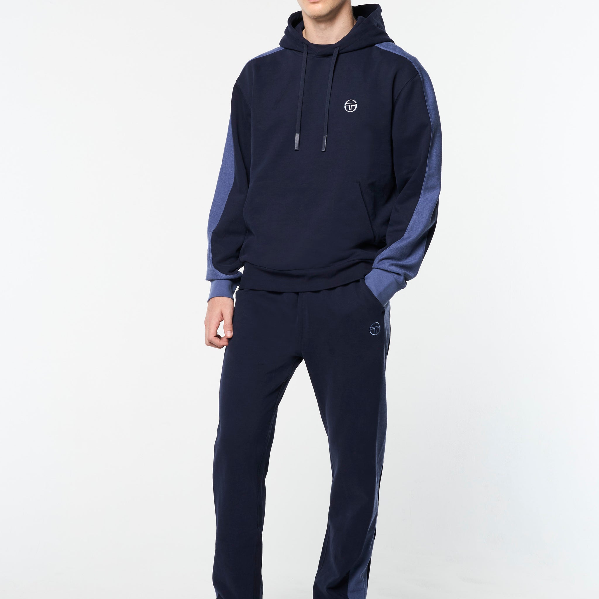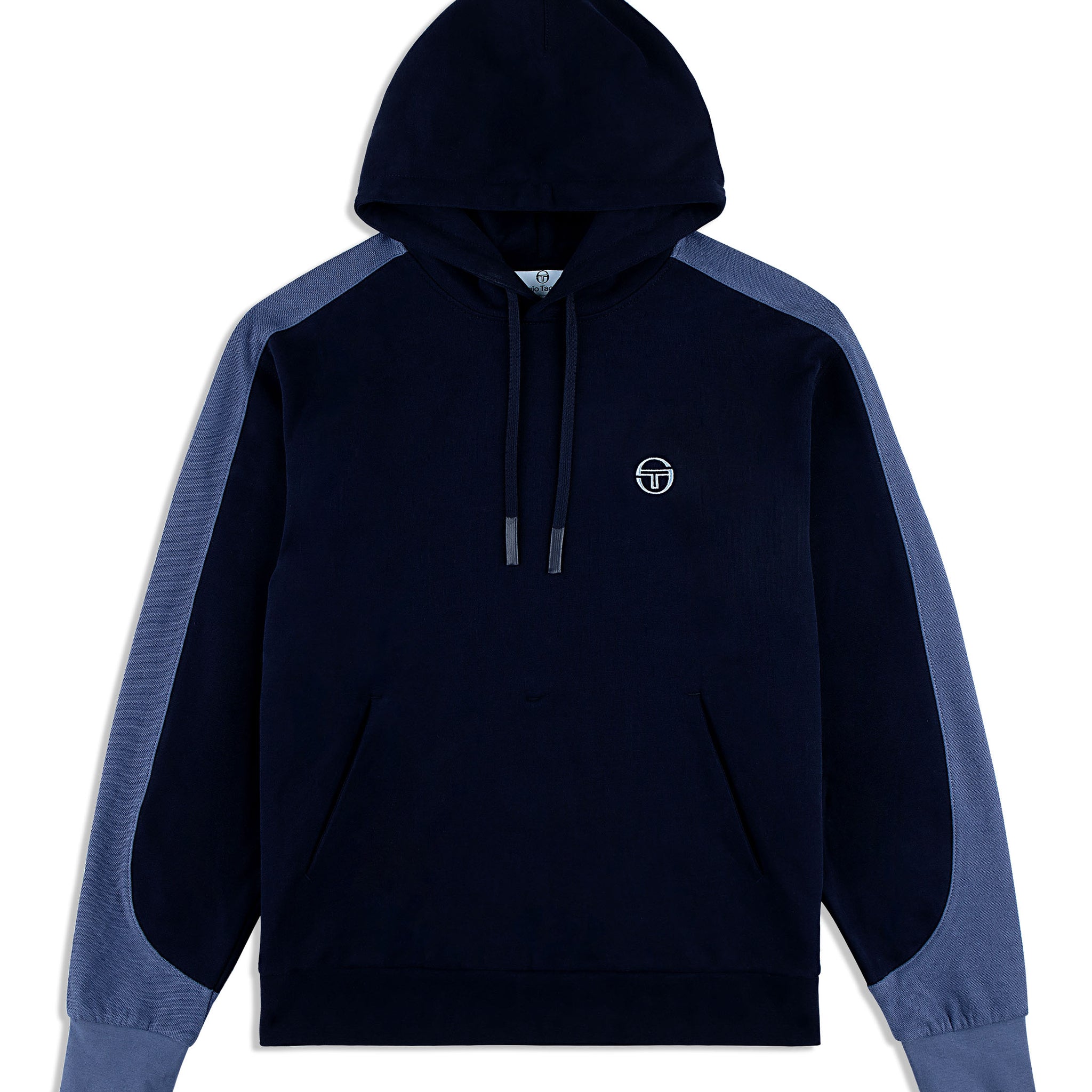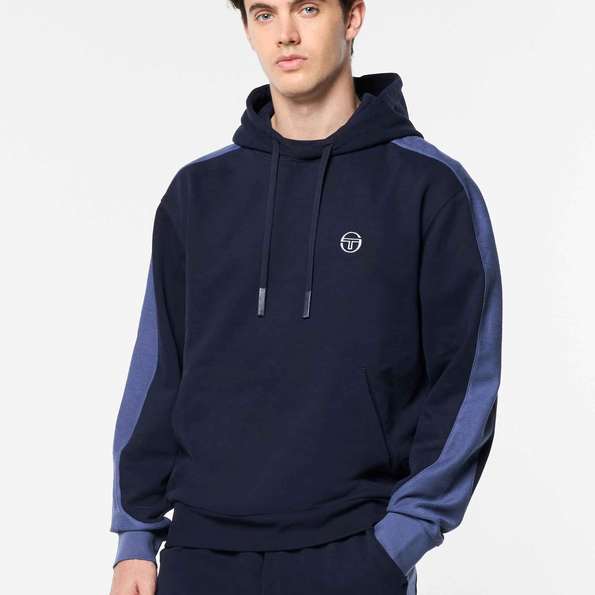 A clean and classic wardrobe staple, the Remo Hoodie is crafted from super-soft, heavyweight French terry cotton for maximum comfort with an elevated vibe. Featuring contrast color-block paneling at the sleeves, this premium hoodie is finished with high-density silicone Sergio Tacchini artwork at the back and an interior kangaroo pocket for a clean finish.