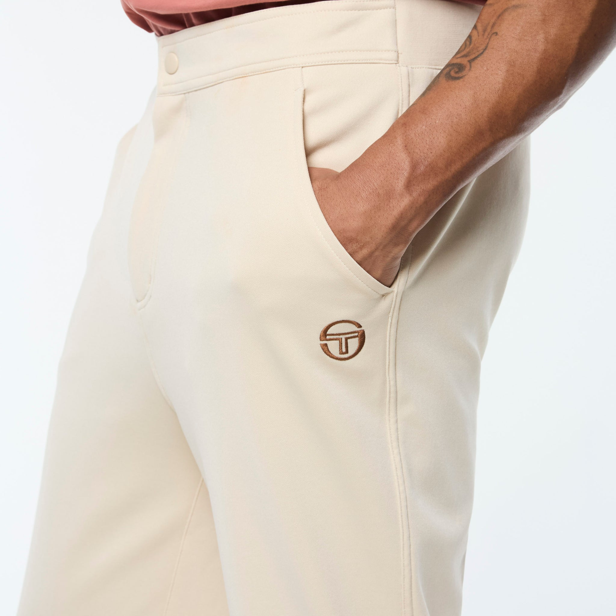 - Embroidered ‘ST’ monogram logo at left thigh