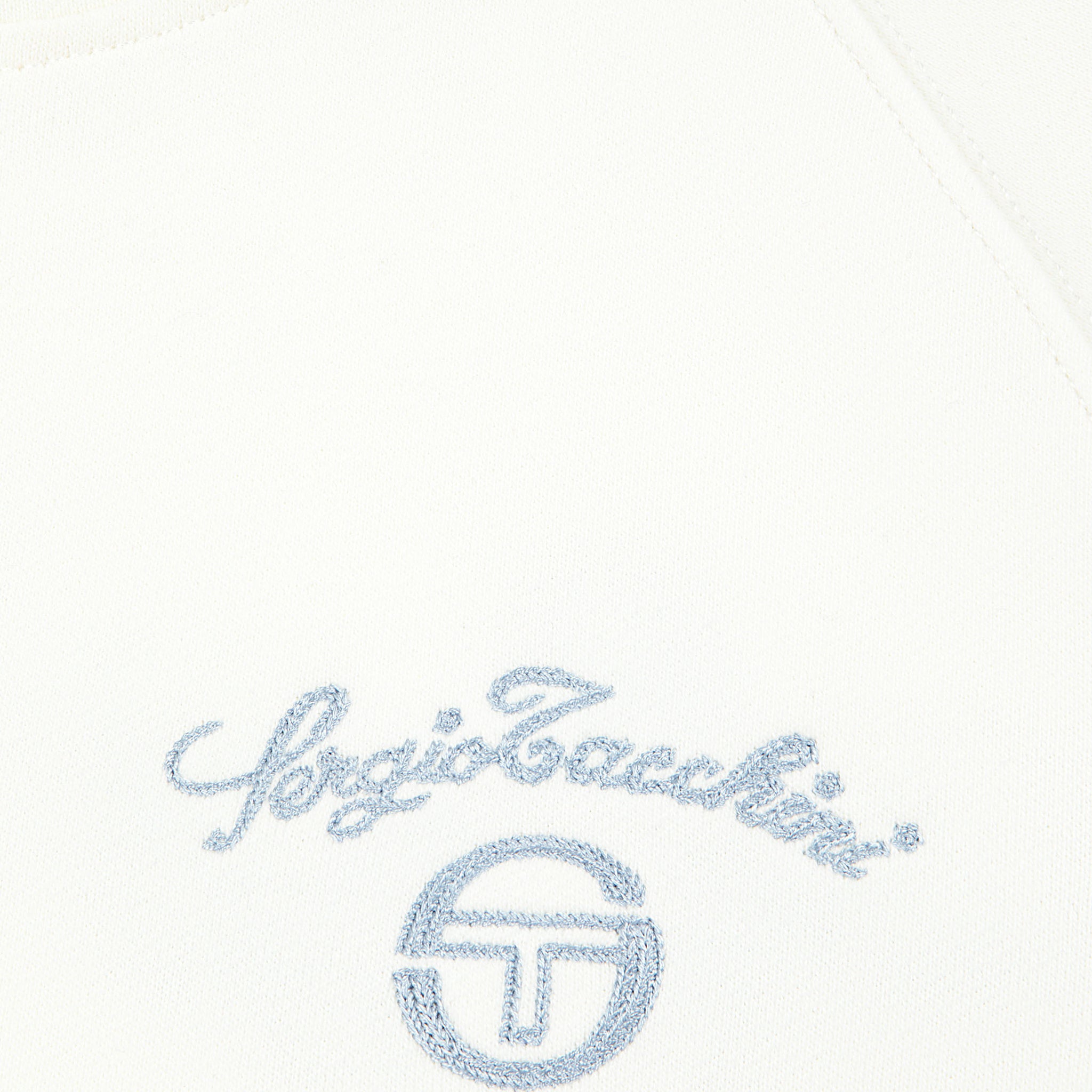 - Chainstitched Sergio Tacchini script logo at left chest and back