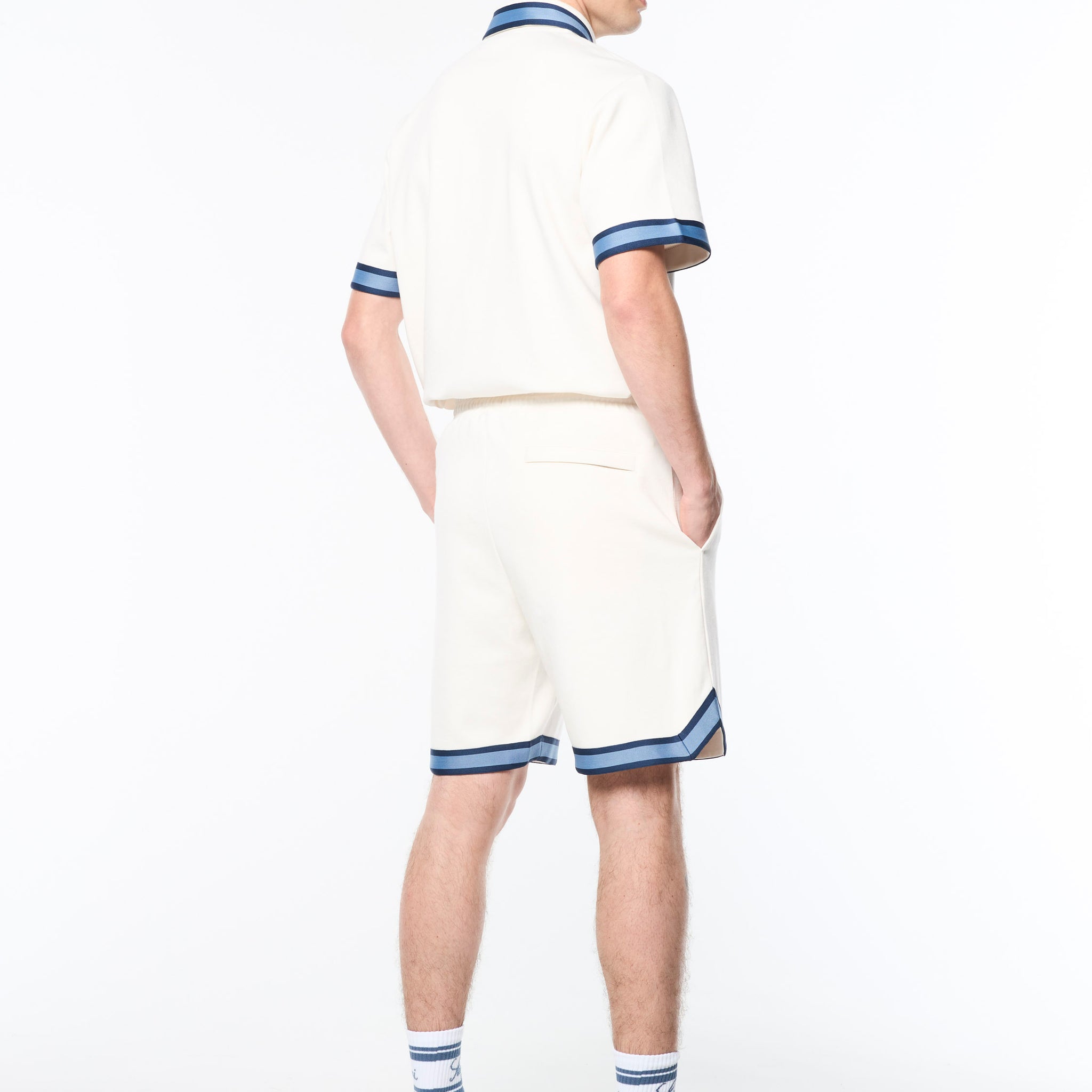 Keep it sharp with our elevated Tito Shorts, crafted from heavyweight interlock fabric with an incredibly soft handfeel and subtle stretch for a refined finish. Topped with a comfortable drawstring waistband, these premium shorts are complete with striped rib-knit taping at the notched hem and a chainstitched ‘ST’ monogram logo.