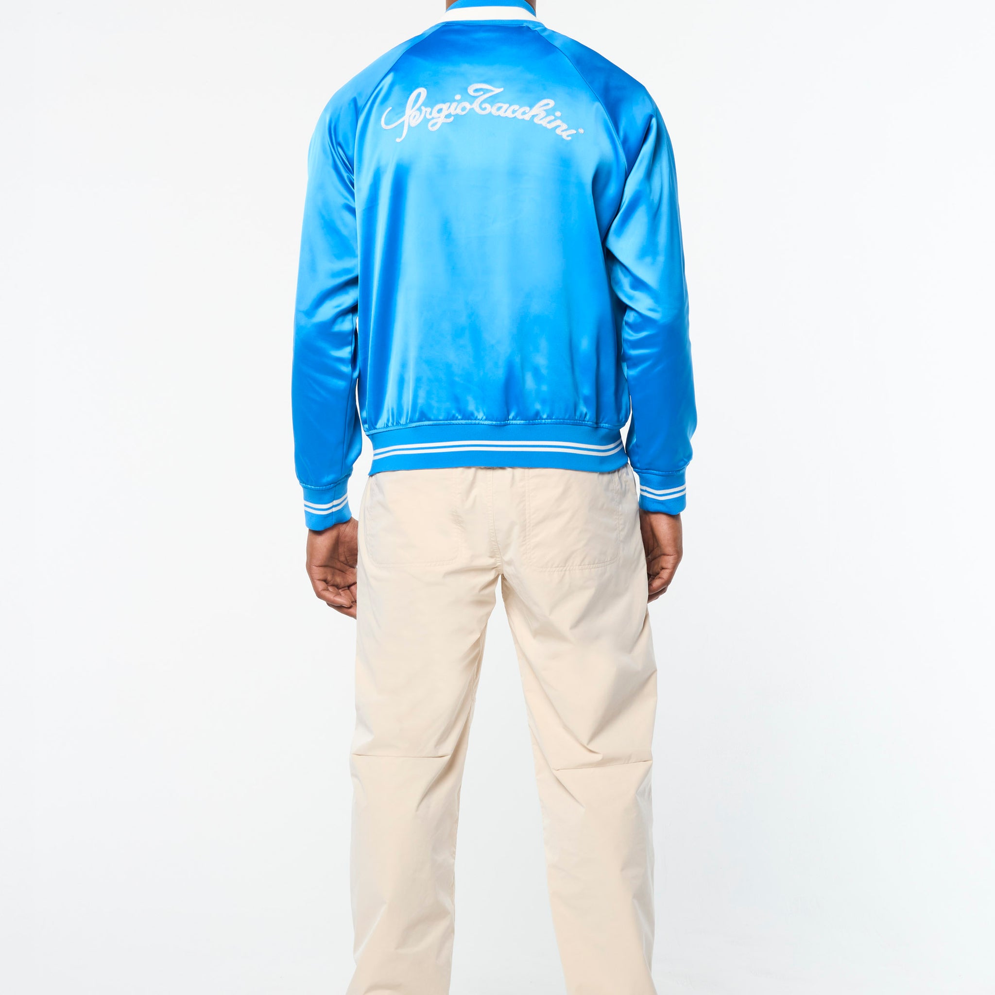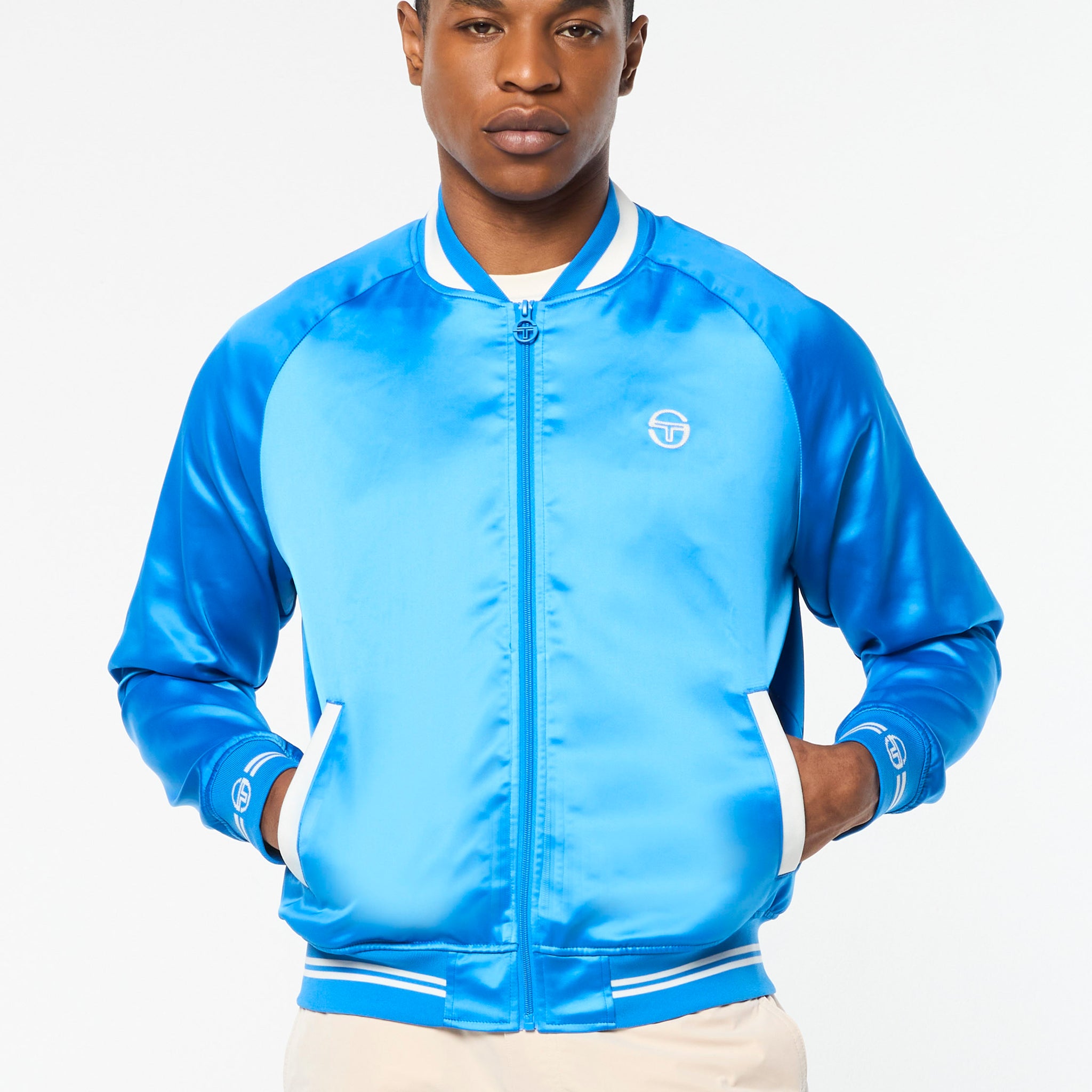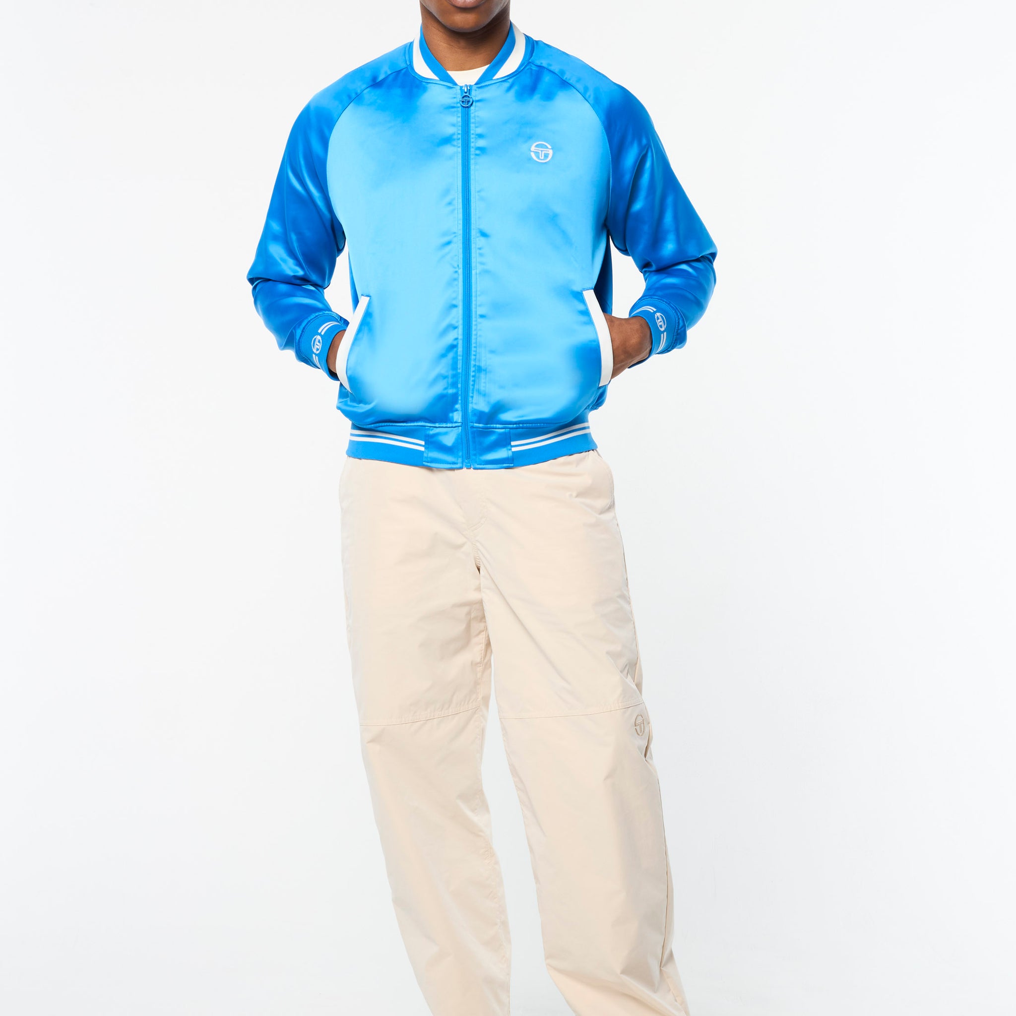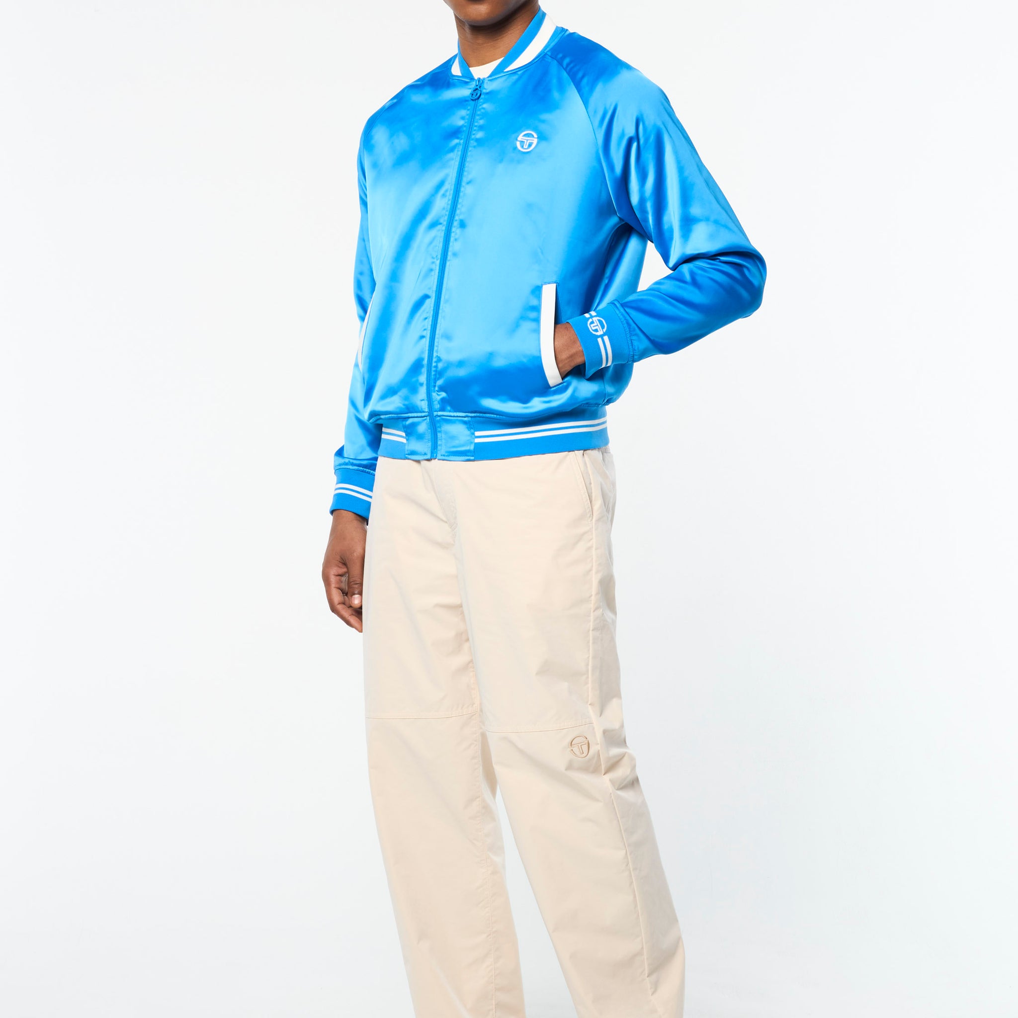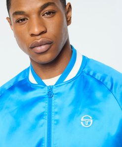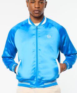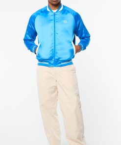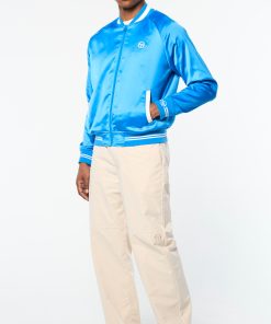 The Tosca Varsity Jacket is crafted from poly satin that’s smooth to the touch with a subtle stretch to keep you looking good and feeling great wherever you’re off to. Featuring our seasonal Mediterranean beach scene ‘Tosca’ print at the interior lining, this elevated full-zip varsity jacket is complete with chainstitch embroidered logos at the chest and back.