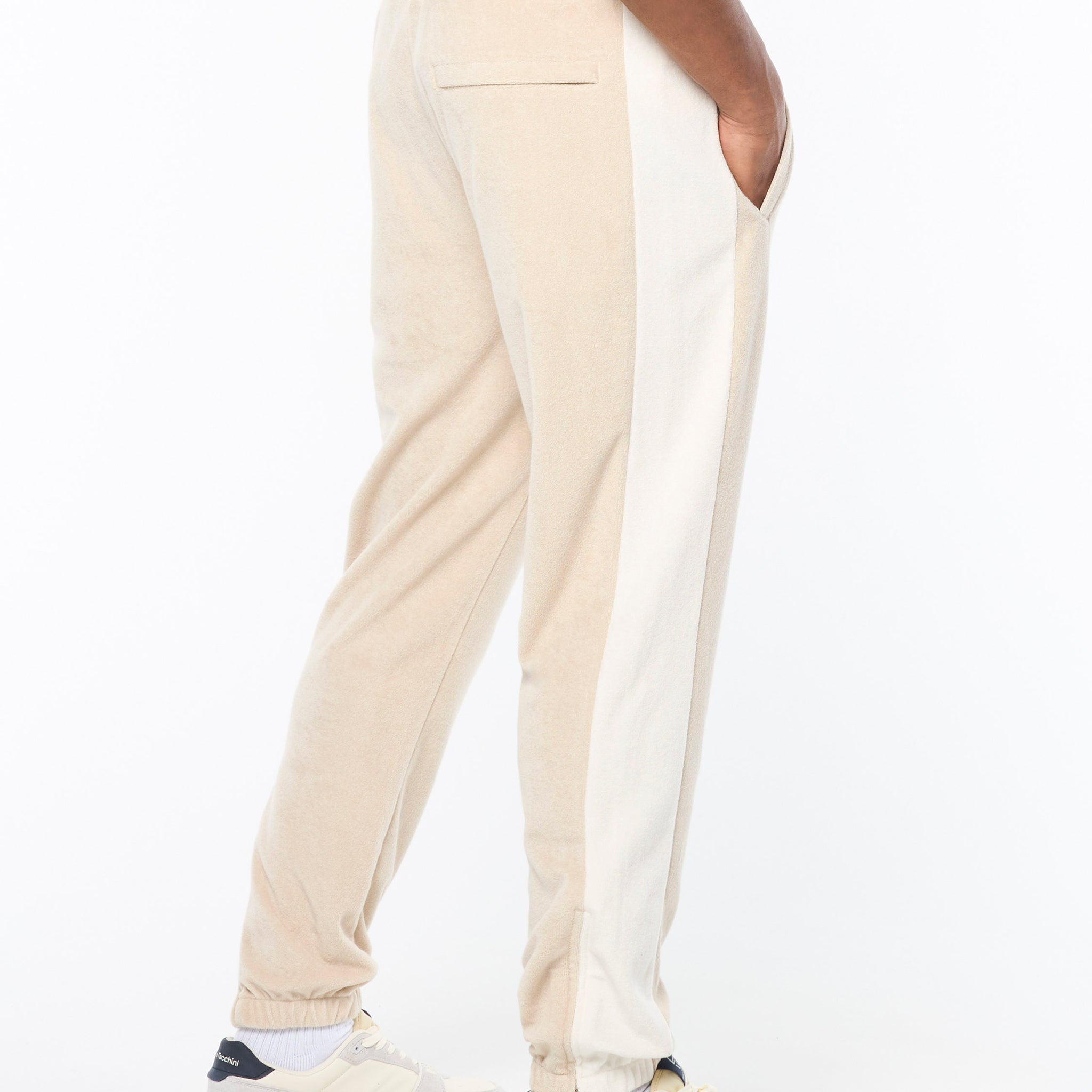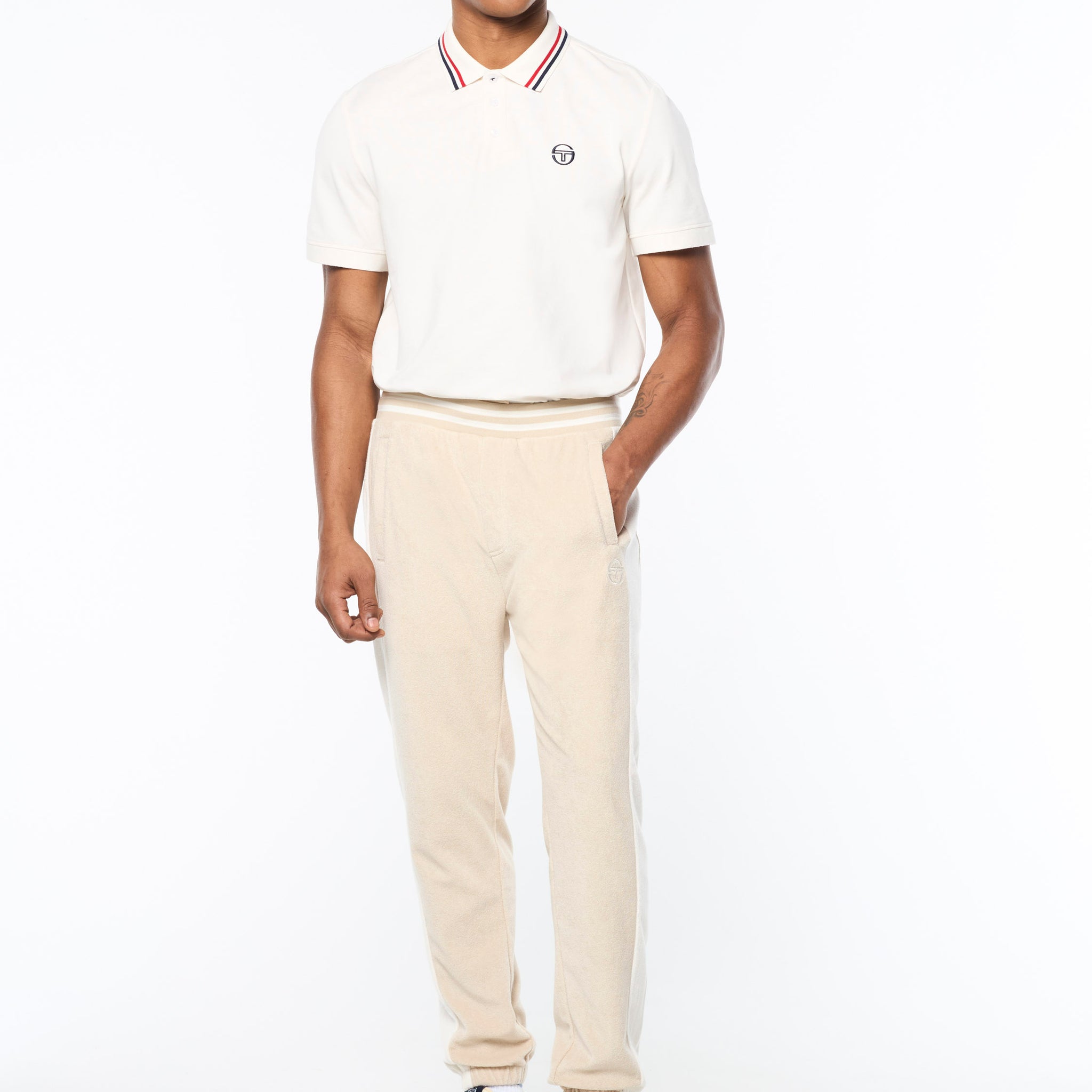 Upgrade your warm-weather wardrobe with the Vitus Track Pant, crafted from luxurious terry towel fabric for contemporary comfort with a touch of breezy nonchalance. Featuring a soft rib-knit waistband and adjustable ankle zips, these premium track pants are finished with color-block paneling and stripe details as a nod to retro leisurewear.