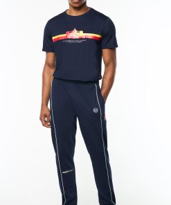 Upgrade your warm-weather wardrobe with the Vitus Track Pant, crafted from luxurious terry towel fabric for contemporary comfort with a touch of breezy nonchalance. Featuring a soft rib-knit waistband and adjustable ankle zips, these premium track pants are finished with color-block paneling and stripe details as a nod to retro leisurewear.