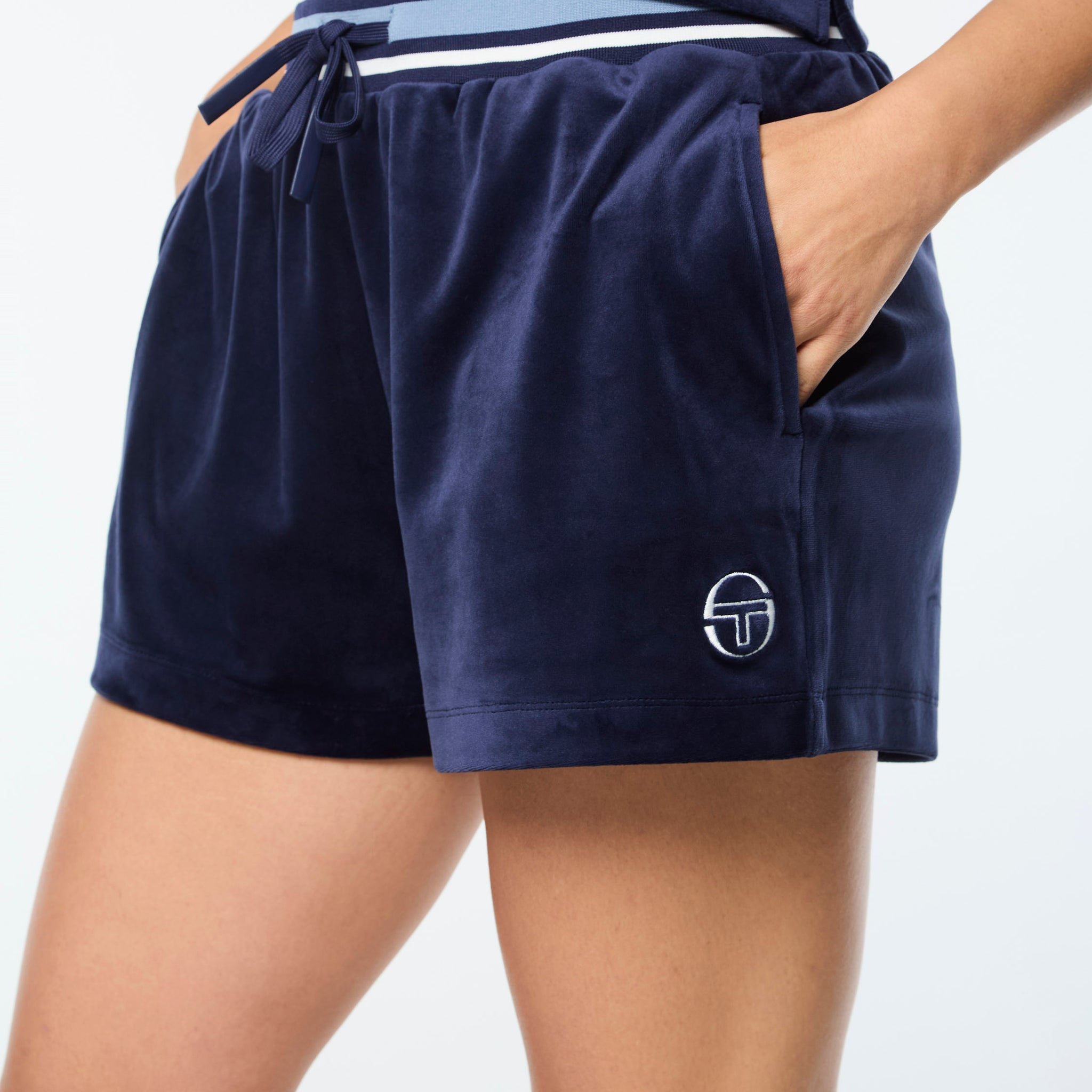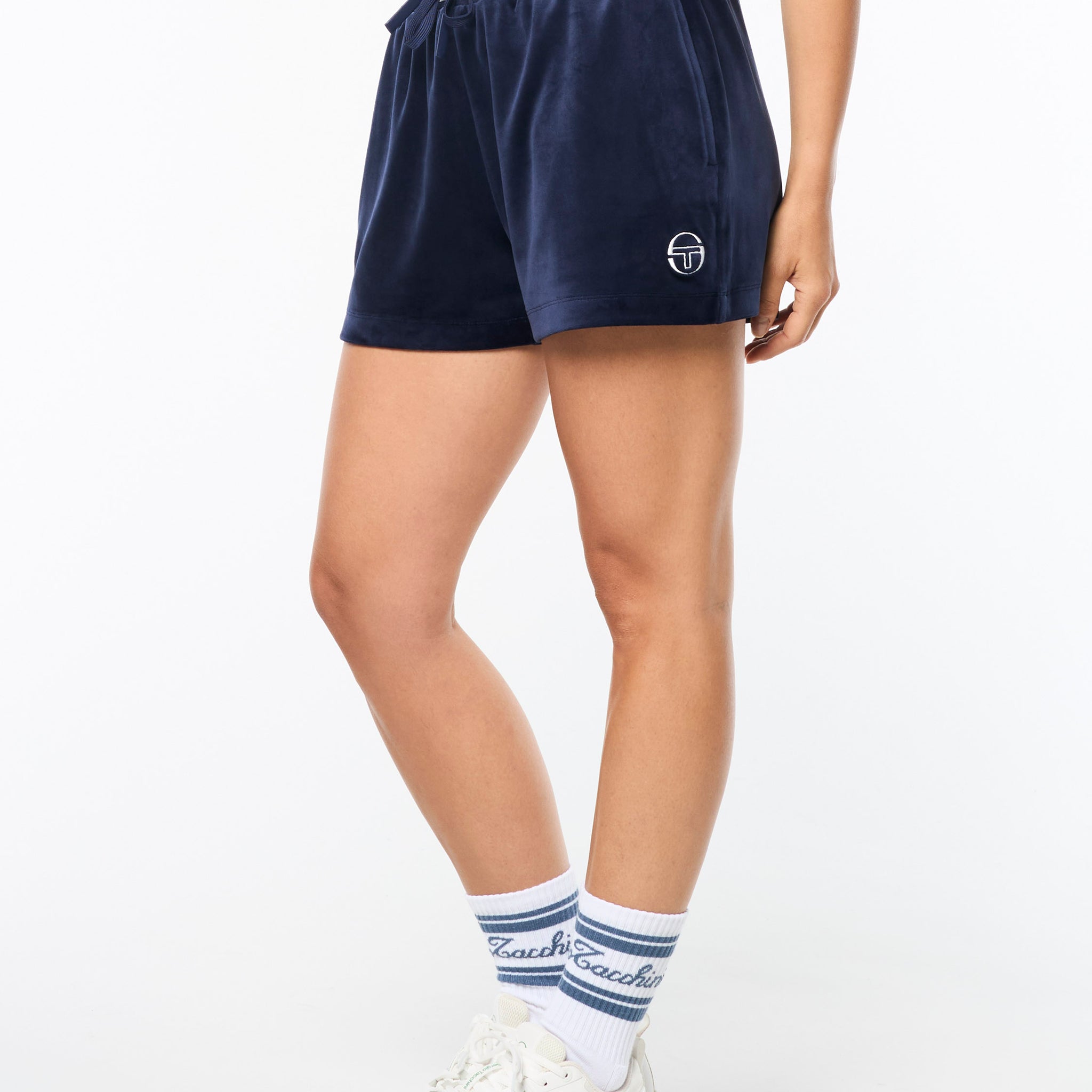 Dress it up or down—the choice is yours with the Adele Short. Crafted from super plush velour with sporty stripe accents at the rib-knit waistband, these chic shorts are perfect for light morning workouts, evening outings, and everything in between.
