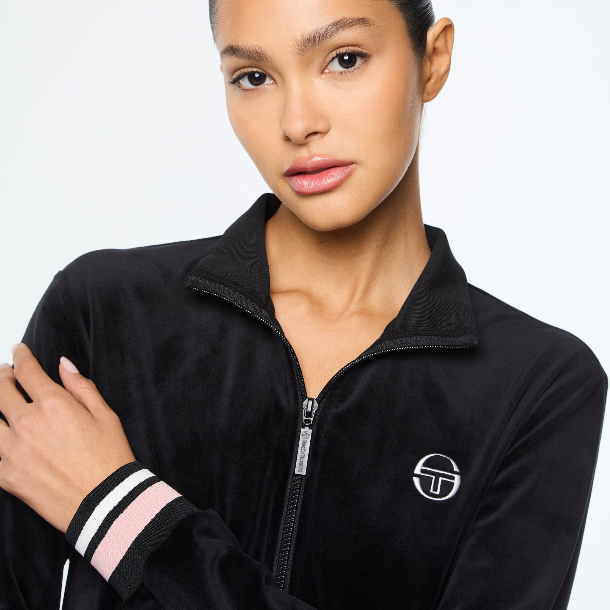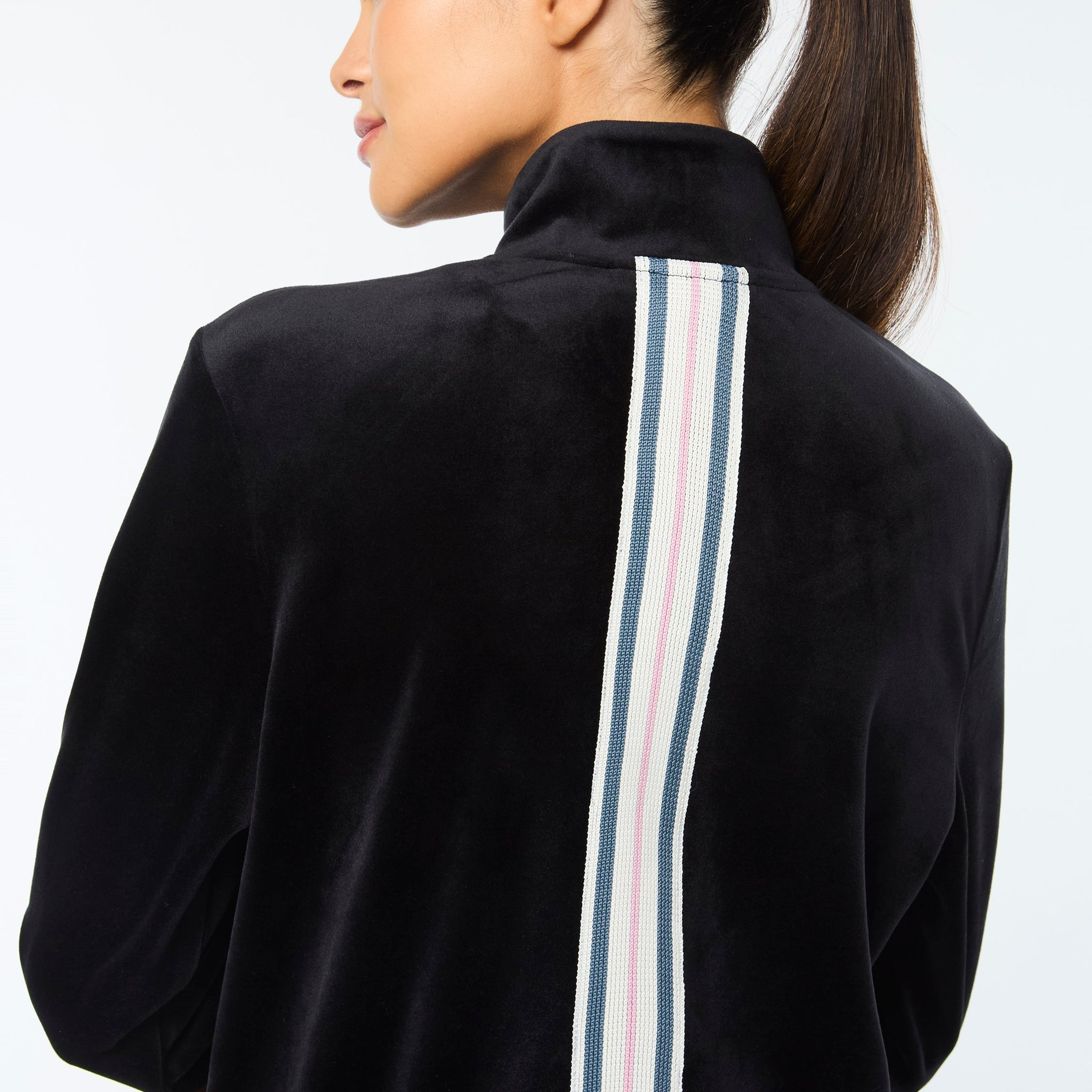 Crafted from super plush velour with sporty striped taping down the back, our luxe Adele Track Jacket is perfect for morning workouts, evening strolls, and everything in between. Dress it up or down—the choice is yours.