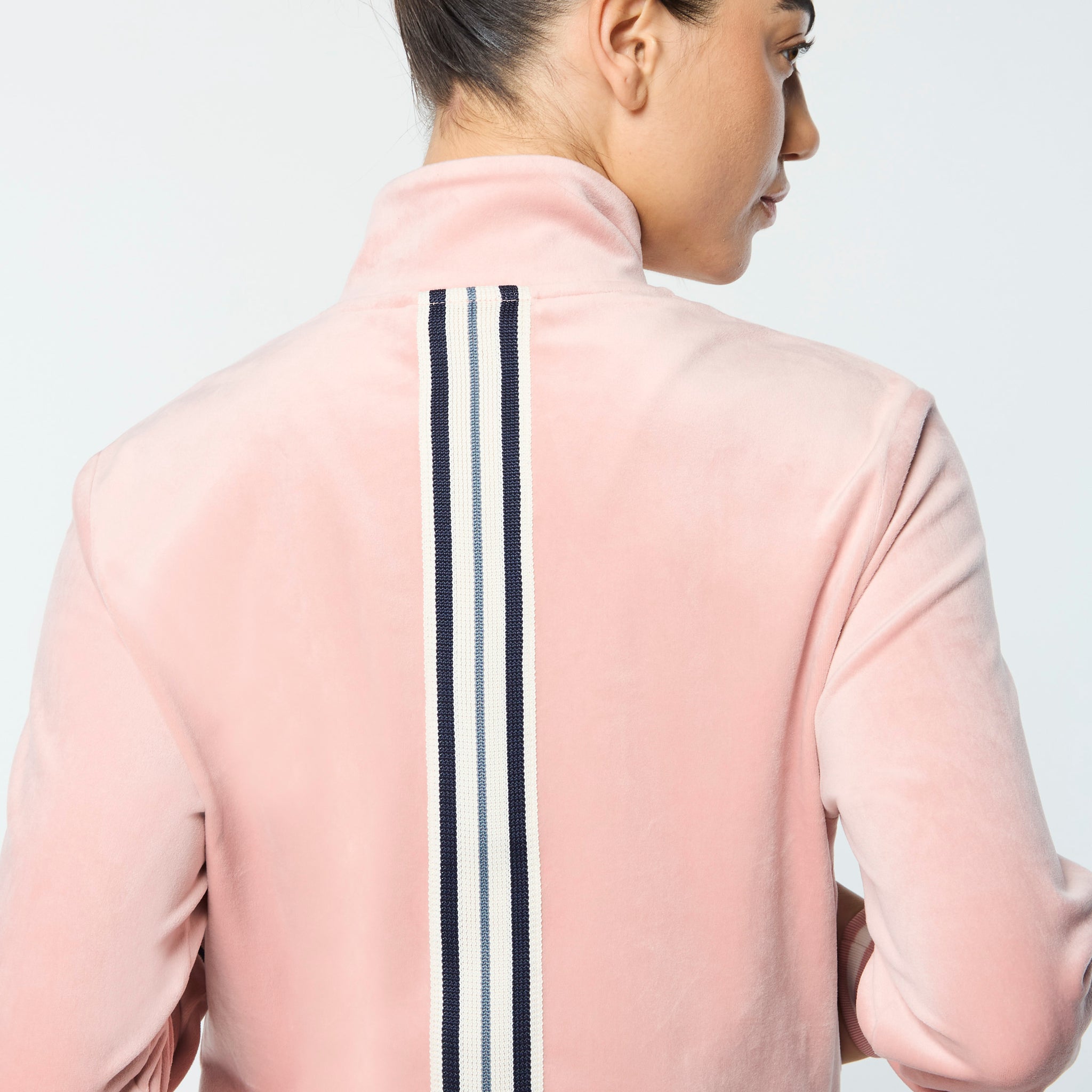 Crafted from super plush velour with sporty striped taping down the back, our luxe Adele Track Jacket is perfect for morning workouts, evening strolls, and everything in between. Dress it up or down—the choice is yours.