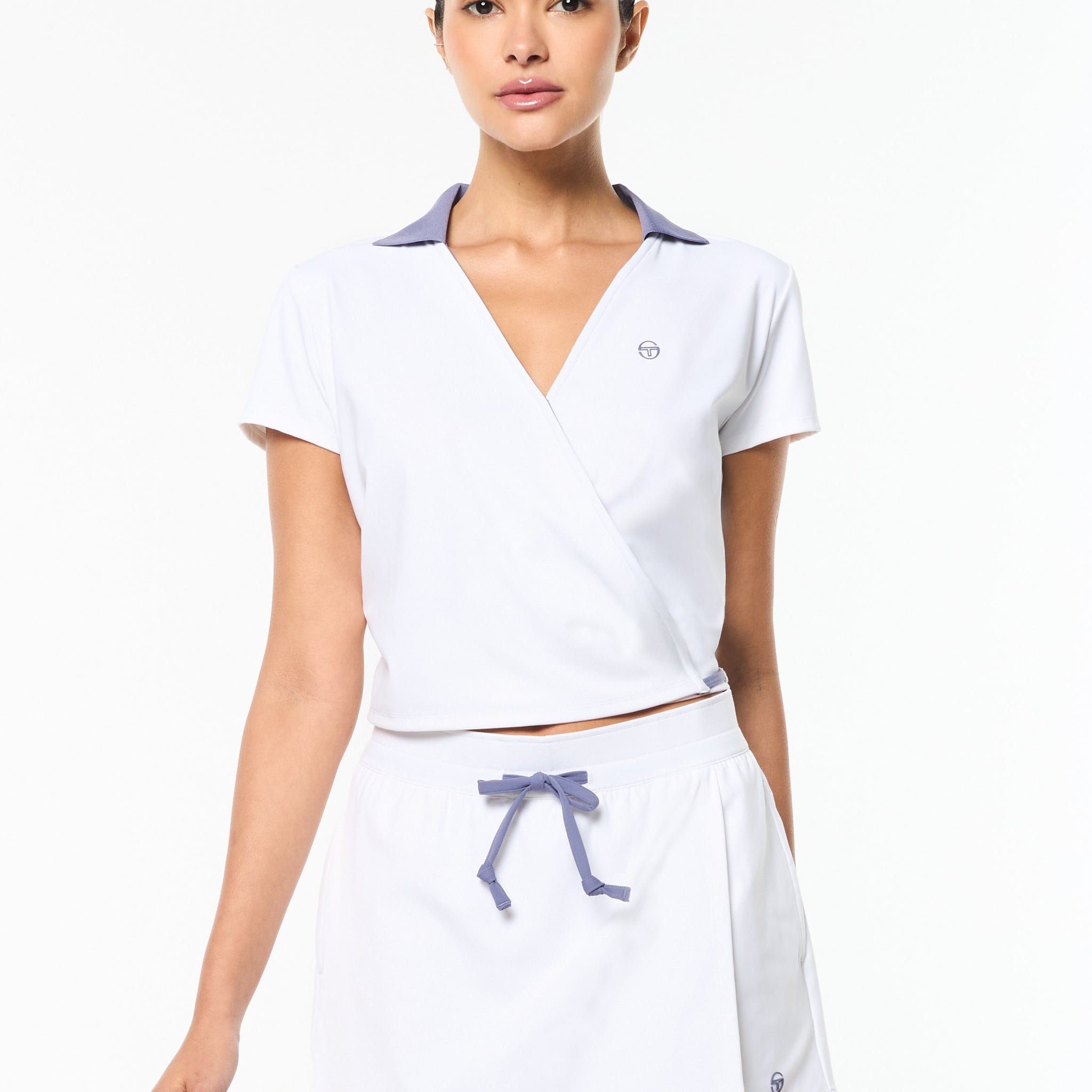 Sporty meets sculpted. The Agata Wrap Polo reimagines a classic silhouette with a sleek, body-hugging fit and a flattering crossover wrap front. Crafted from smooth, stretchy performance fabric with ties at the back for a secure wrap, it’s made to move—on or off the court.