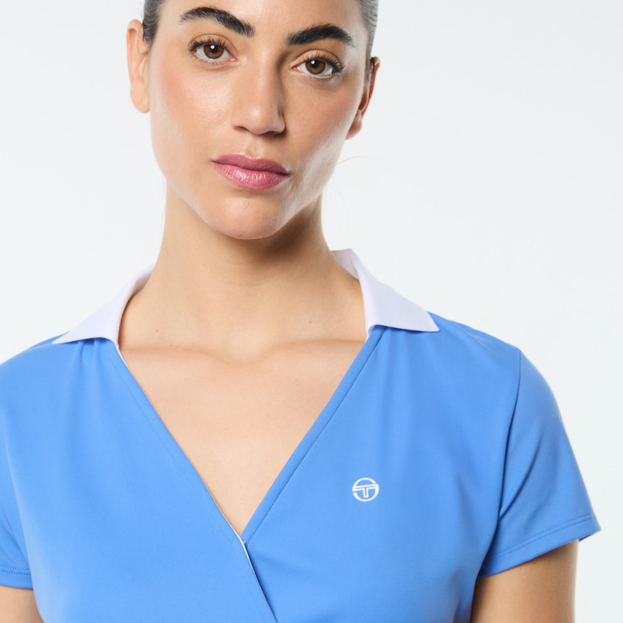 Sporty meets sculpted. The Agata Wrap Polo reimagines a classic silhouette with a sleek, body-hugging fit and a flattering crossover wrap front. Crafted from smooth, stretchy performance fabric with ties at the back for a secure wrap, it’s made to move—on or off the court.