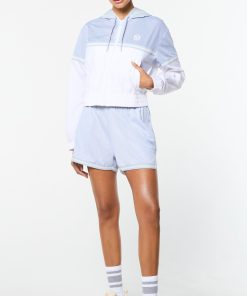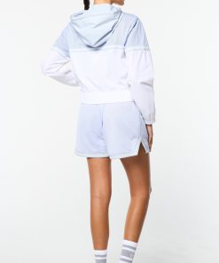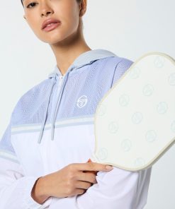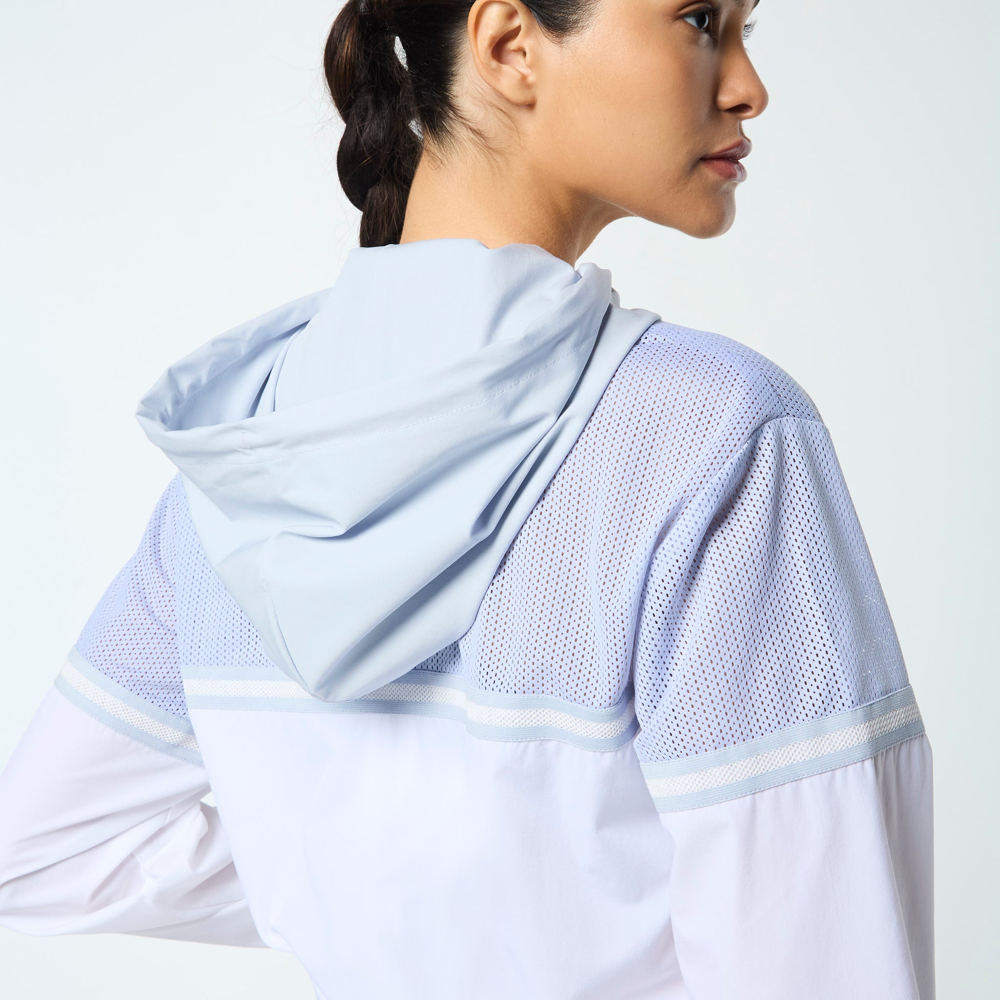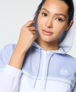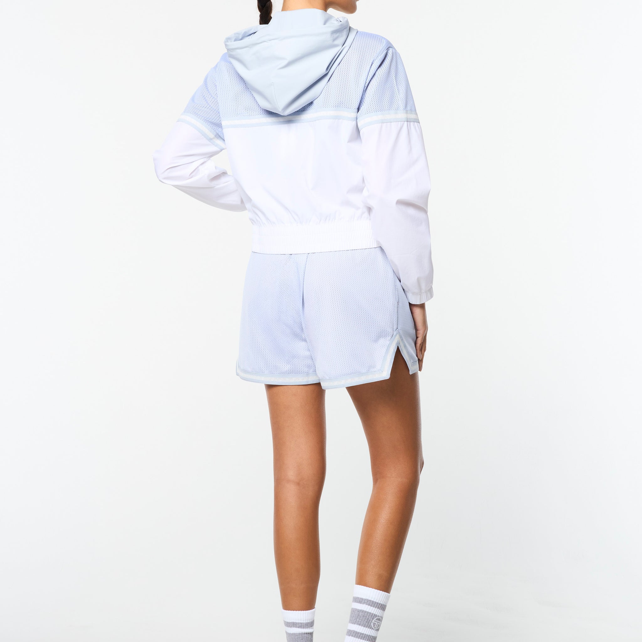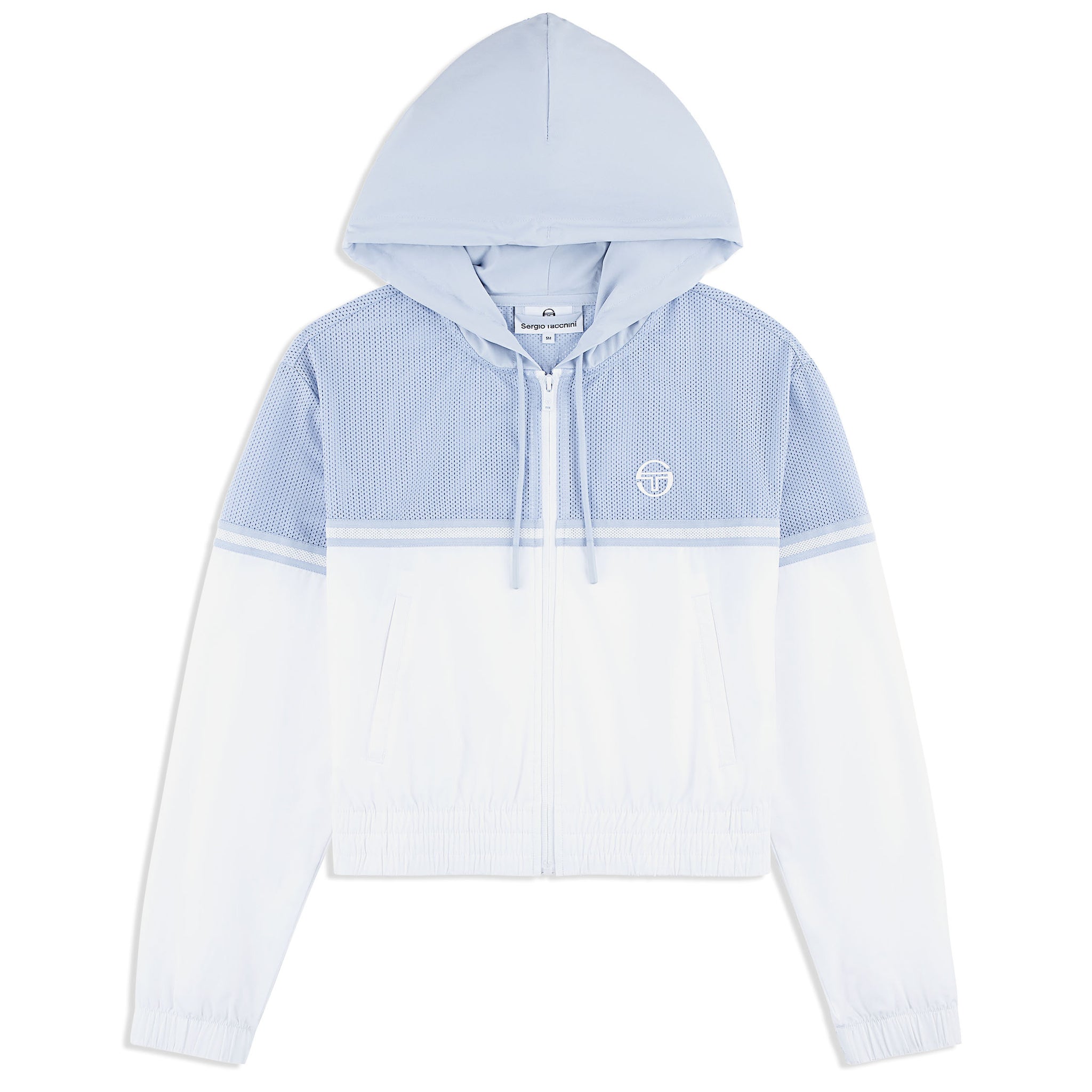 Stay cool on the court with our Angelina Track Jacket, crafted from lightweight performance stretch fabric with eyelet mesh panels to keep you ventilated when practice heats up. Custom “net” trim taping is an homage to classic tennis nets, while a spacious hood and handwarmer pockets complete the fit.