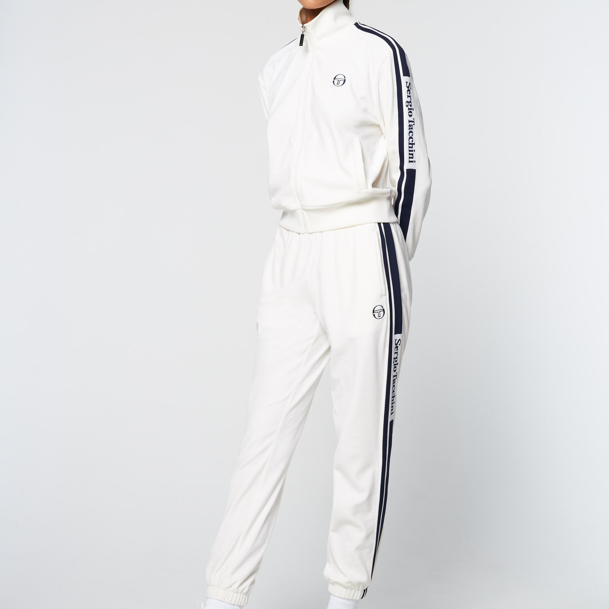 Crafted from plush velour for a soft and luxurious feel, the Atri Velour Track Pant features Sergio Tacchini-branded stripe taping down the legs and our iconic ‘ST’ monogram embroidered at the thigh. Cut with an elastic waist for a secure fit, these elevated for-her track pants are complete with spacious pockets and adjustable ankle zips.