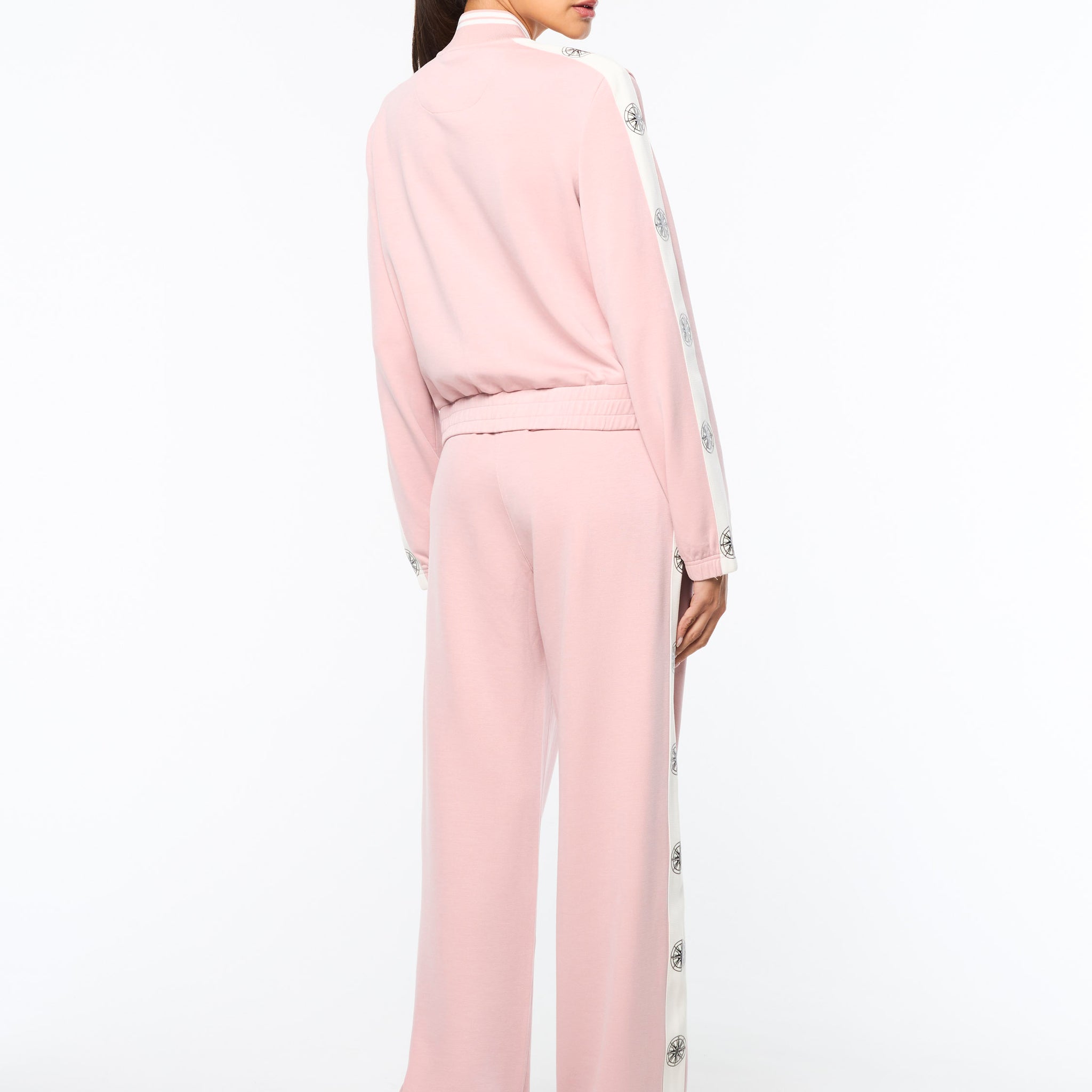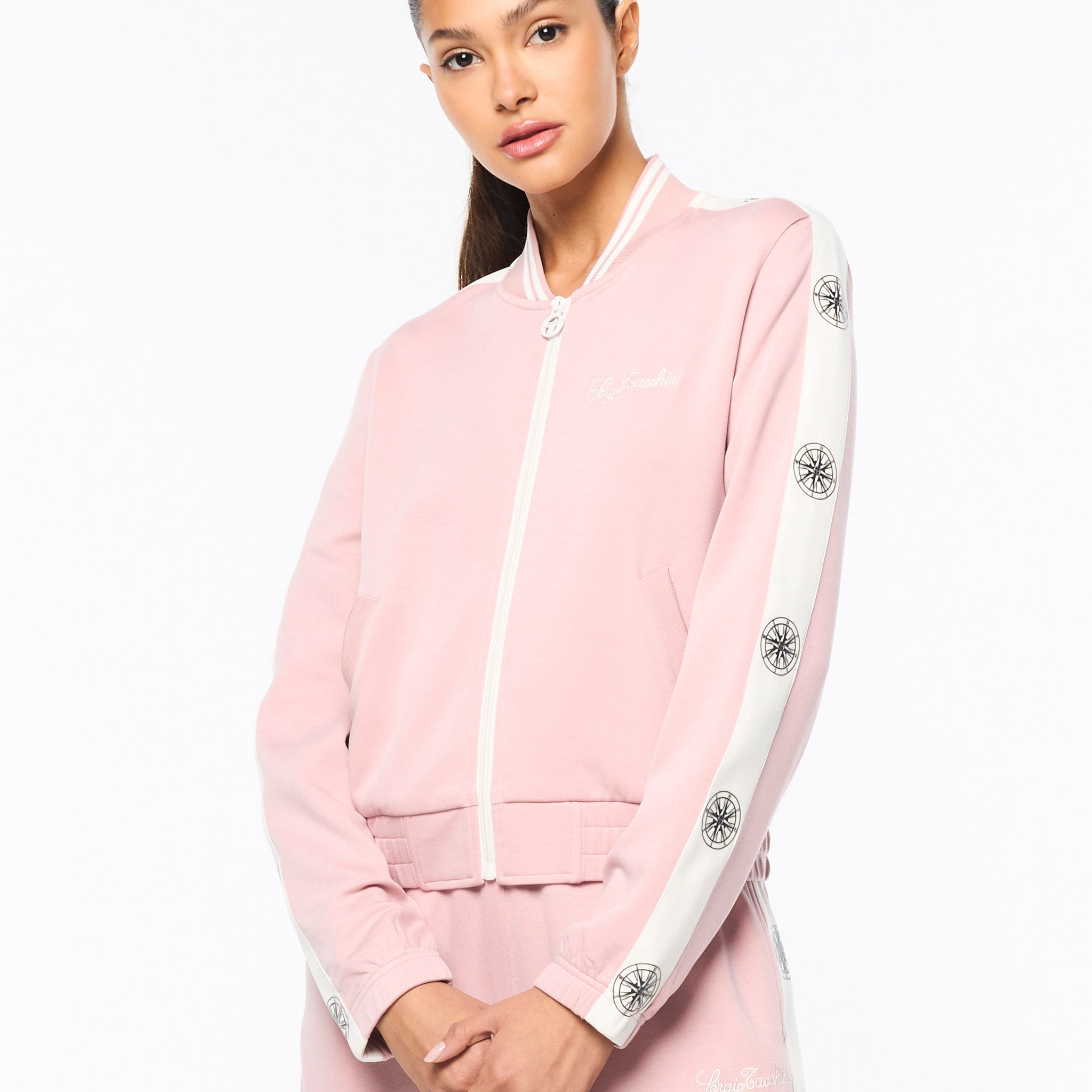 Set sail in our Women’s Bussola Track Jacket, crafted from a luxurious Tencel blend piqué fabric that’s soft and breathable with a subtle stretch—perfect for active individuals and athleisure-wear enthusiasts alike. Featuring nautical stripe accents and a “Compass” rose repeat motif across contrast taping down the sleeves, this refined track jacket offers style and comfort with a Riviera vibe.