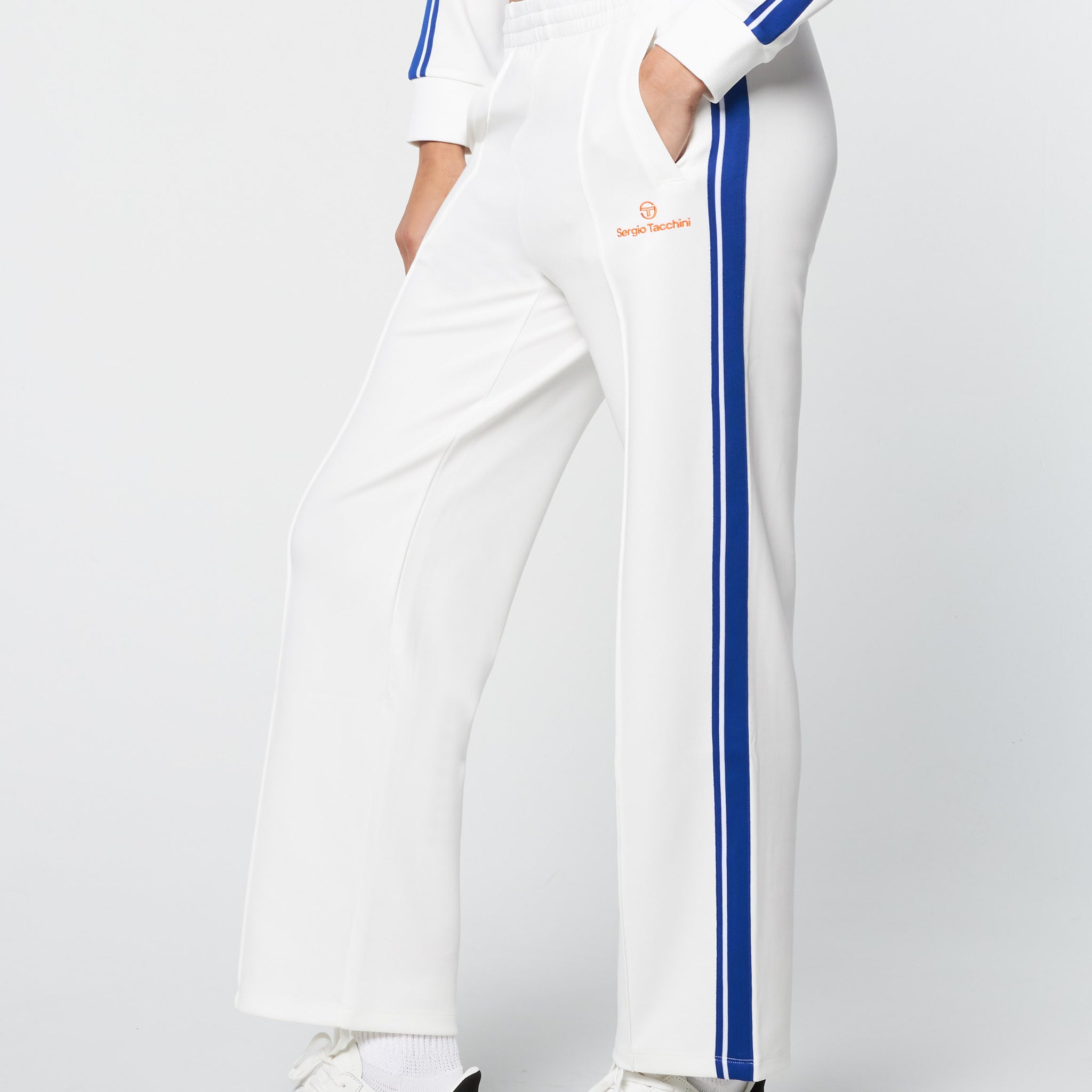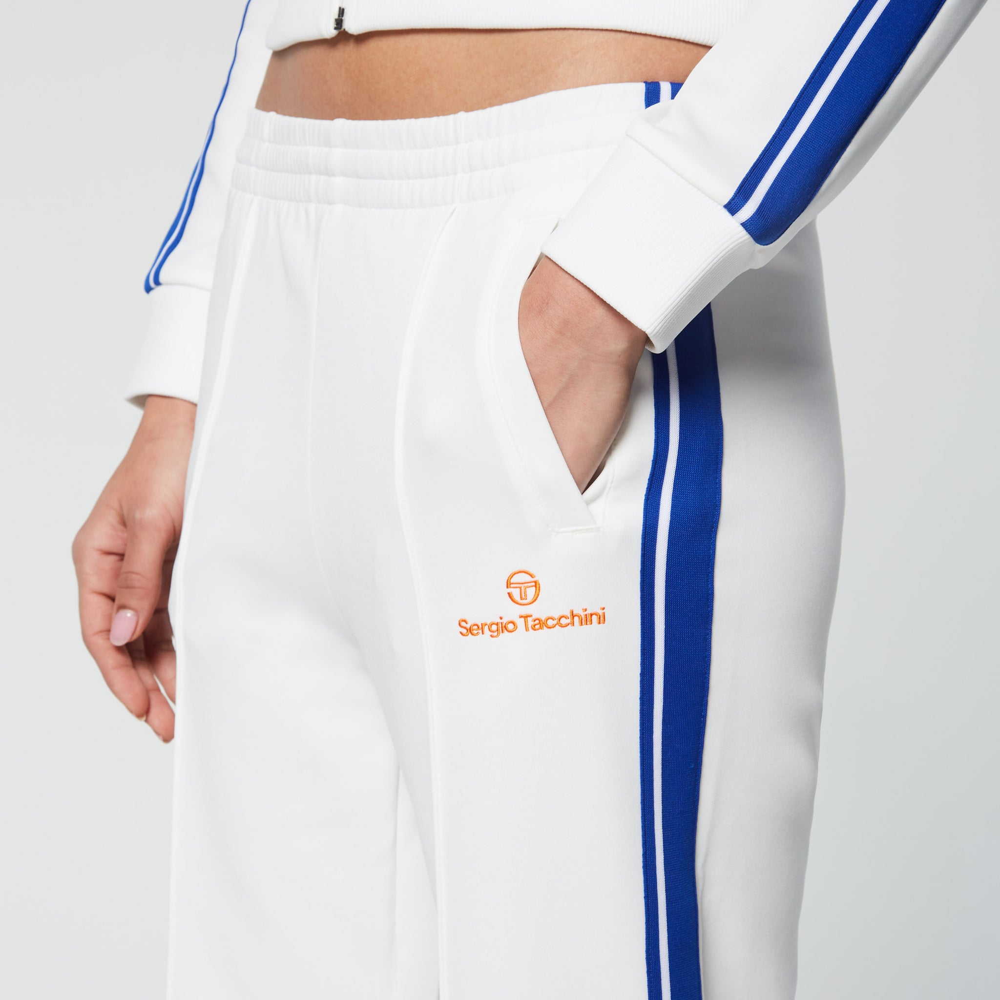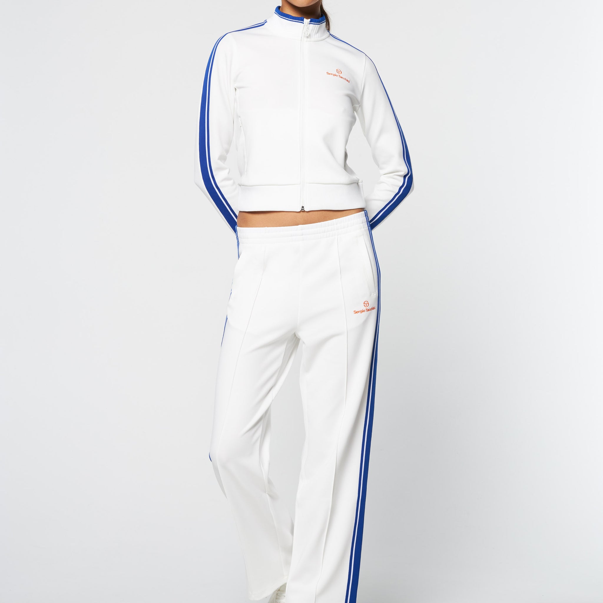 A for-her spin on an iconic Tacchini silhouette, our Women’s Damarindo Track Pant features our distinctive double stripe taping and seam details down the legs for a sporty look. Topped with a comfy drawcord waistband, these elevated track pants are complete with spacious welt pockets and an embroidered Sergio Tacchini logo at the left thigh.