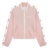 Crafted from lightweight performance fabric that’s buttery-soft, stretchy, and supportive, this athletic jacket is cut with an aqua zipper featuring a repeat script logo down the front. Handy thumbholes keep the chill out, while flattering princess seams contour the body for a feel-good fit.