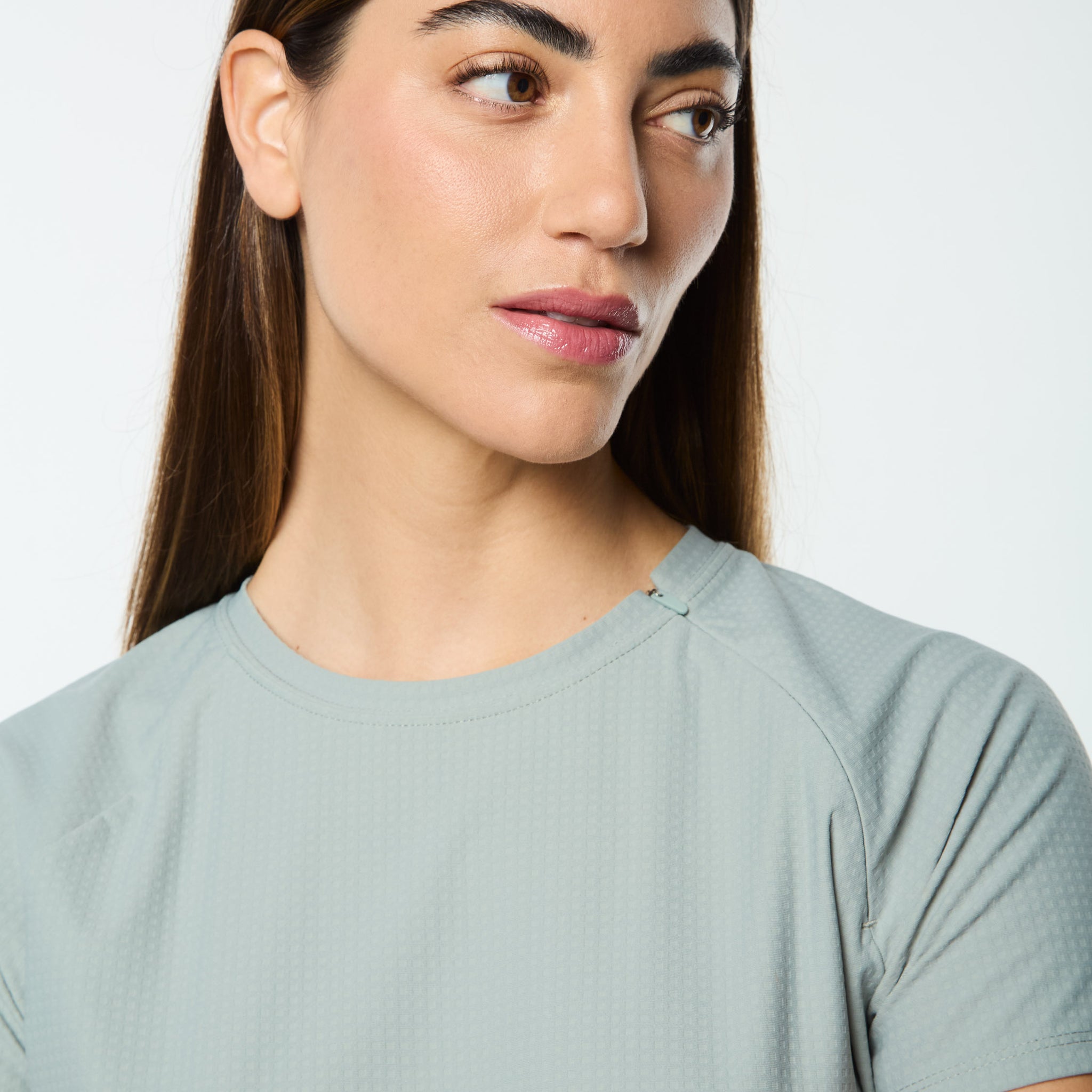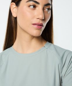 Streamlined and sculpted, the Eva Cropped Top is built to move with you. Crafted from a stretch grid knit that’s breathable and moisture-wicking with a subtle texture, this fitted performance tee features a sleek invisible zip at the collar seam and a barely-there silicone logo hit at the back. Designed for sport, styled for everyday.