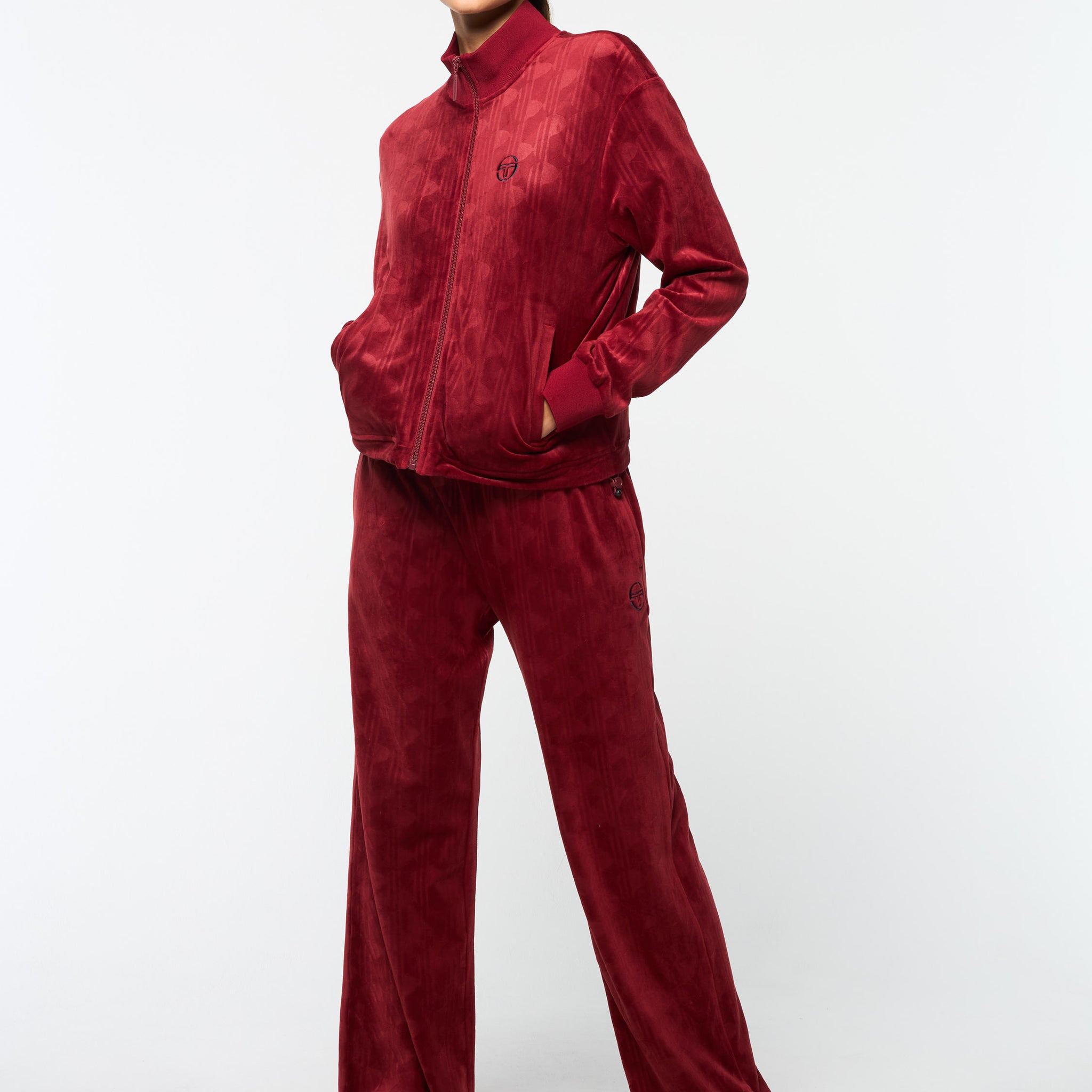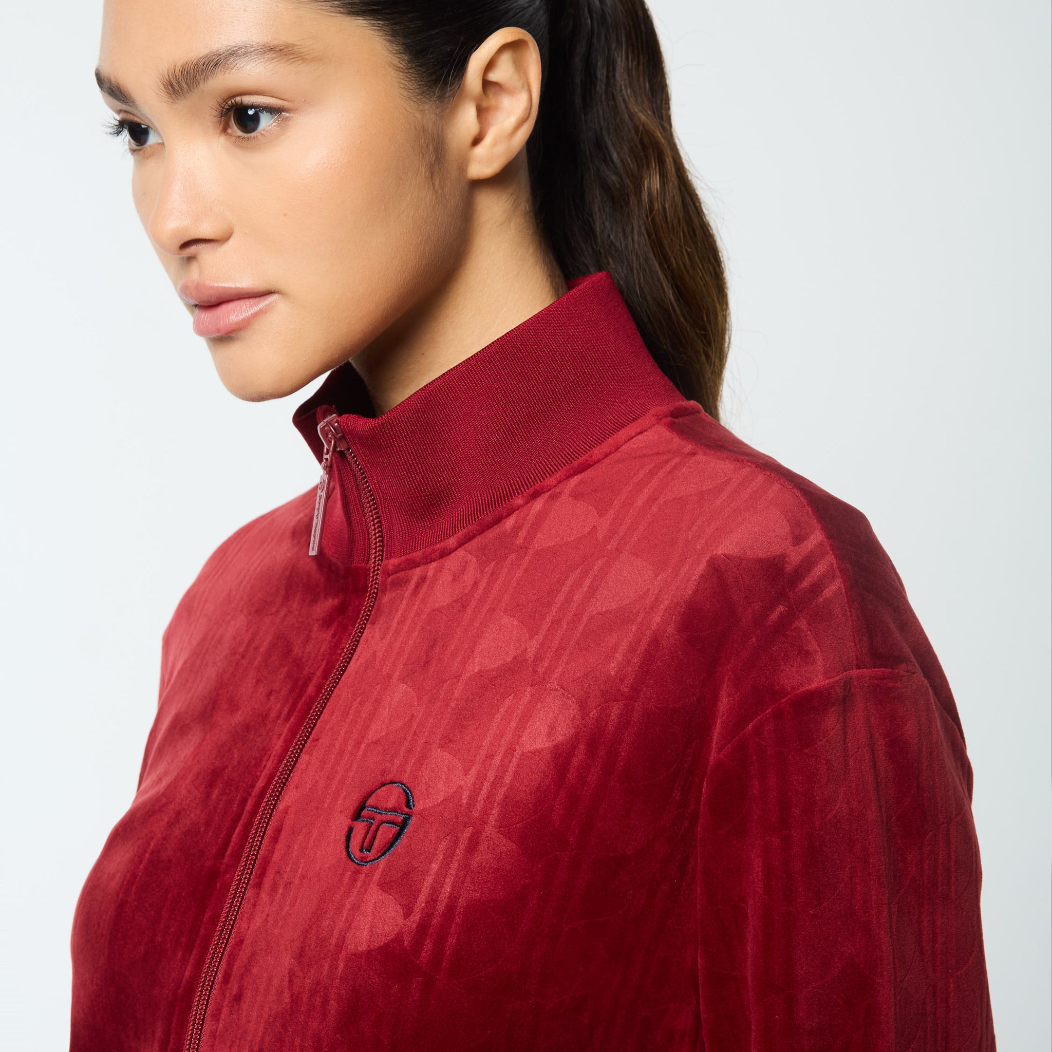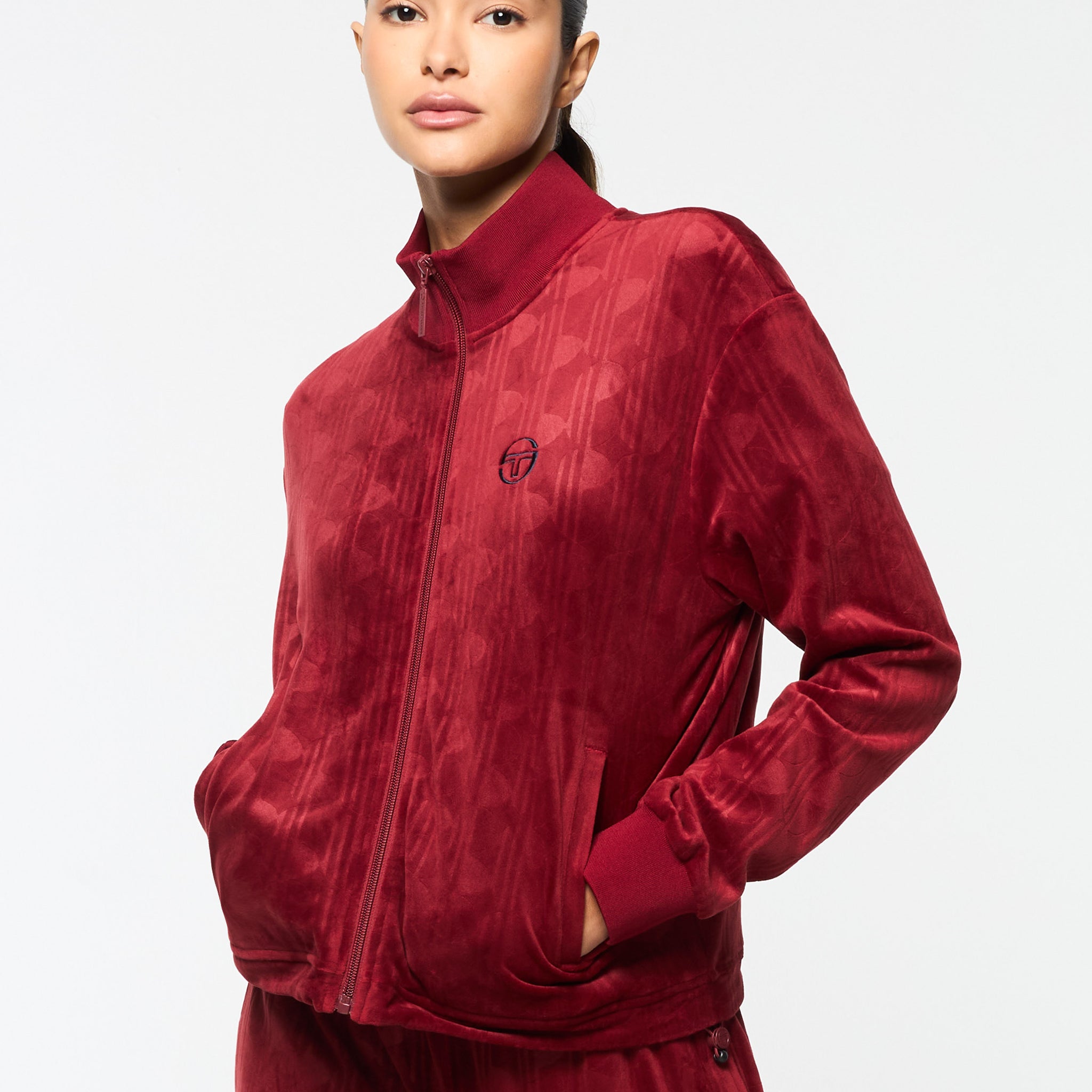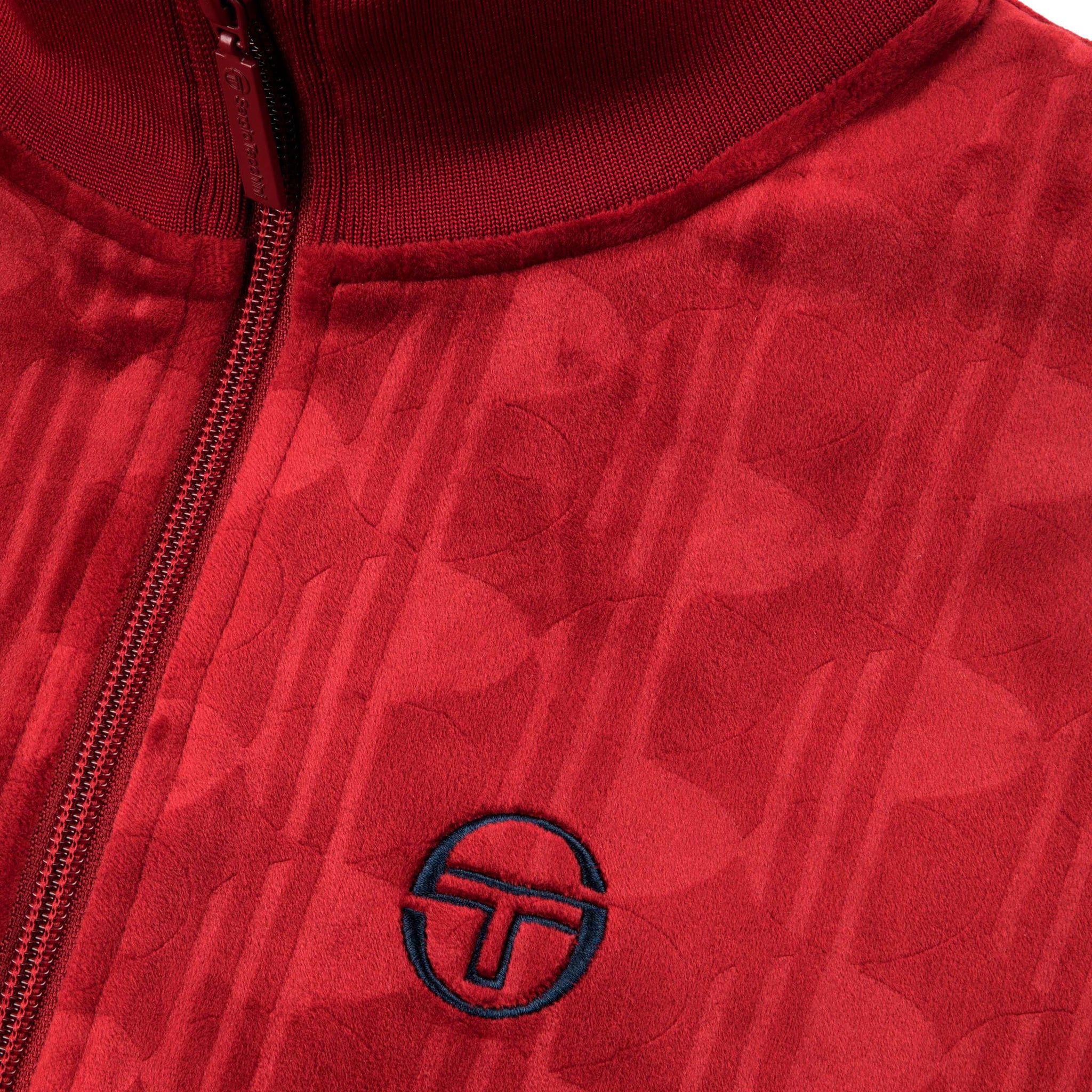 - Premium debossed velour track jacket