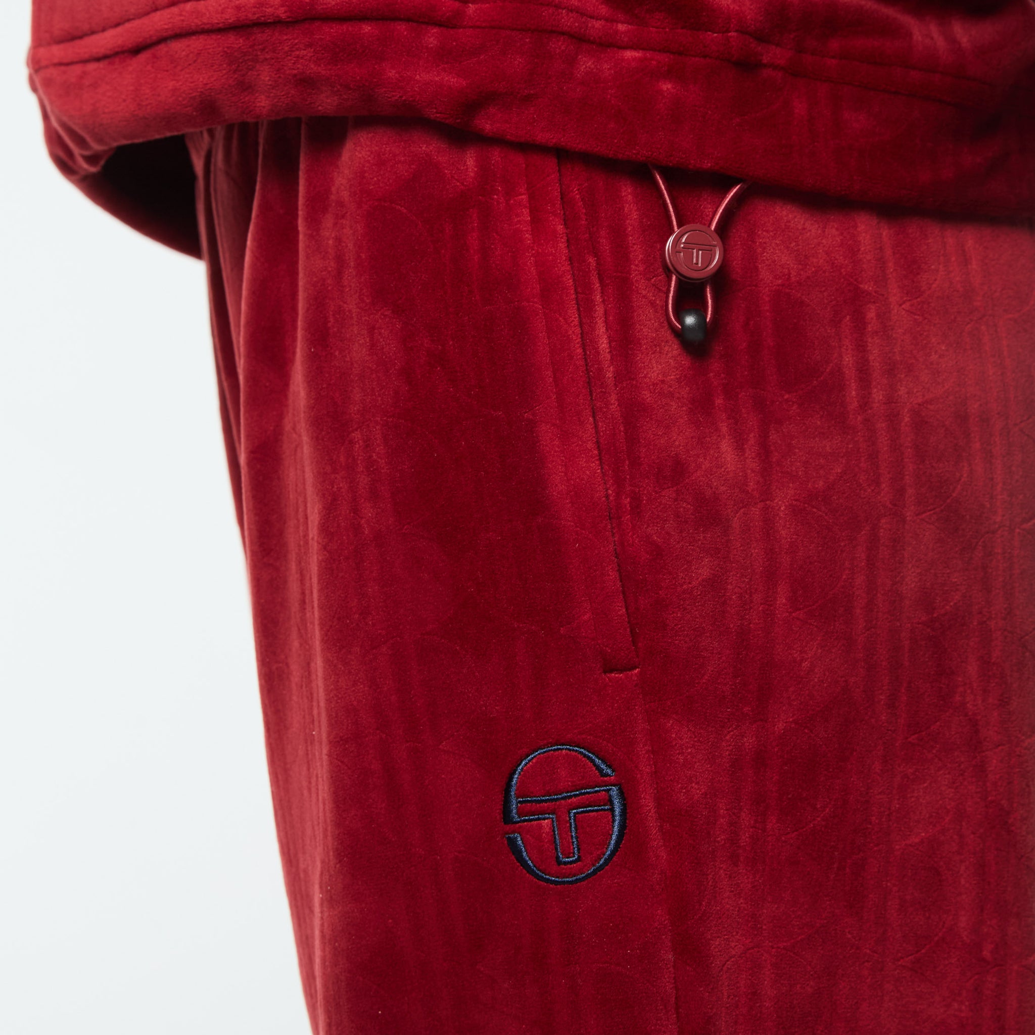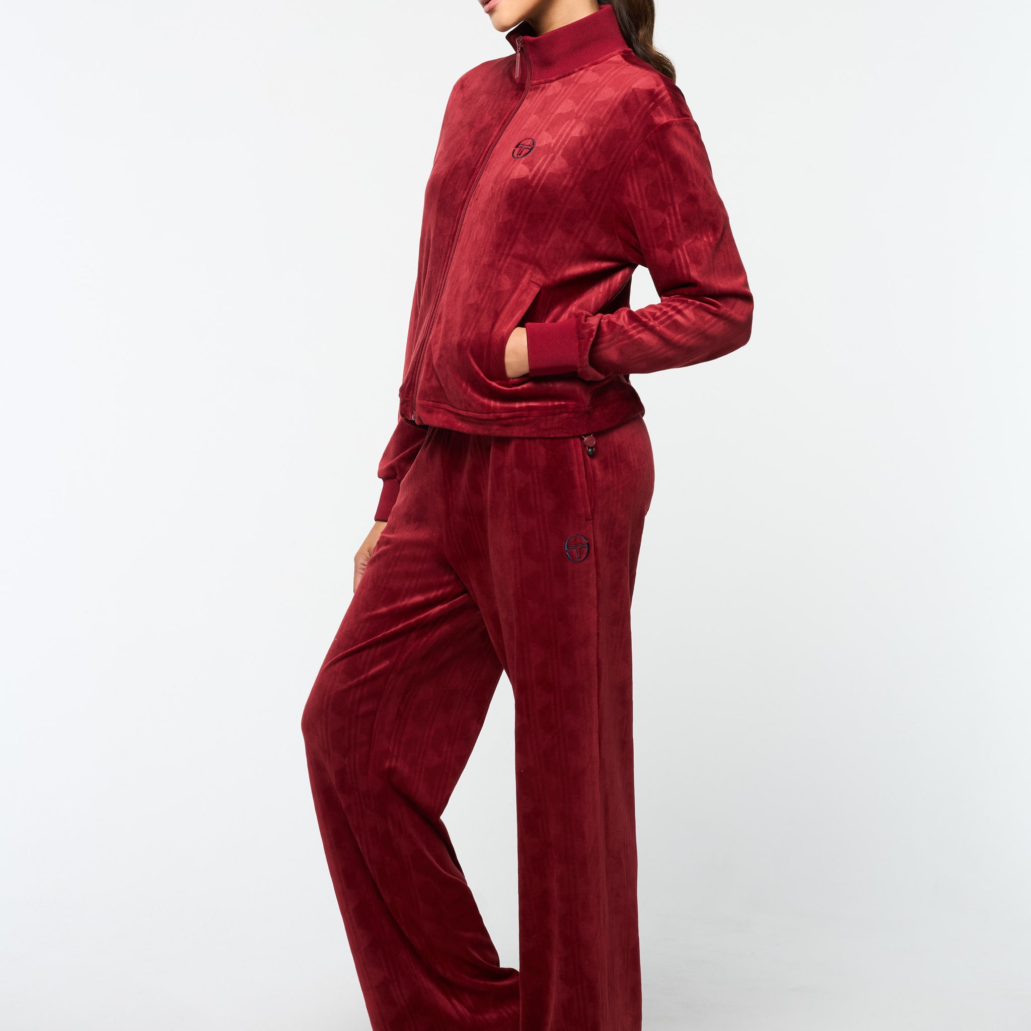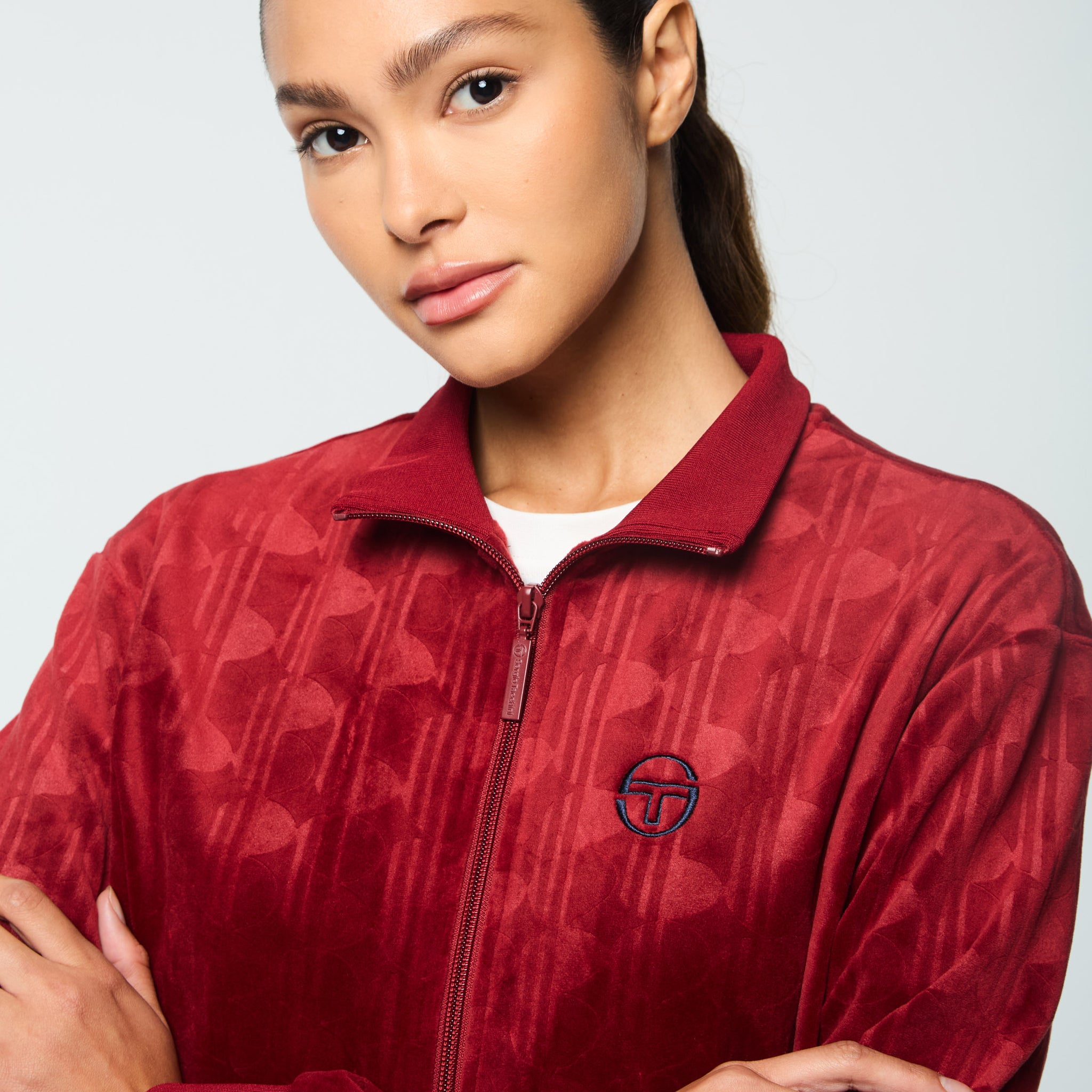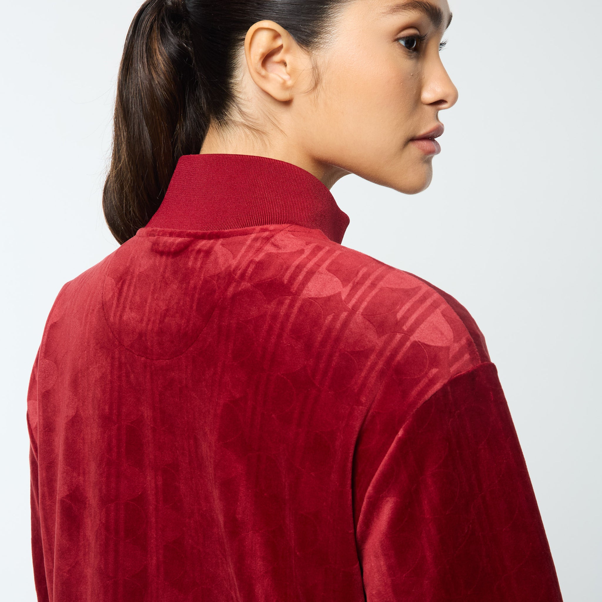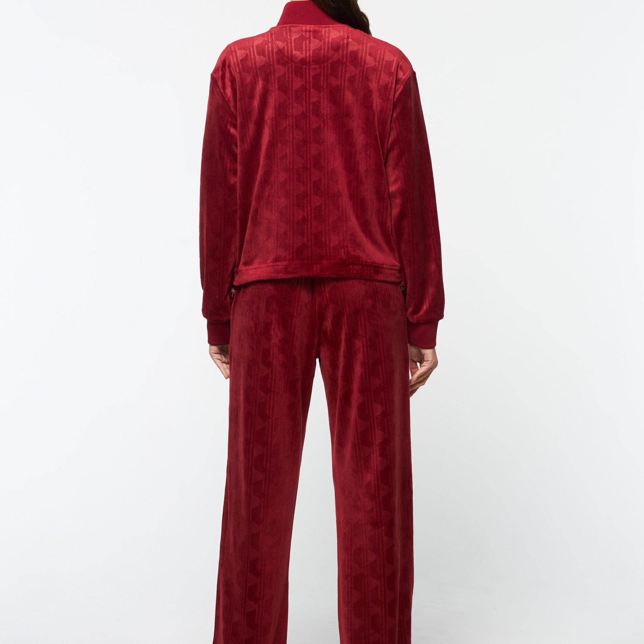 - Premium debossed velour track jacket