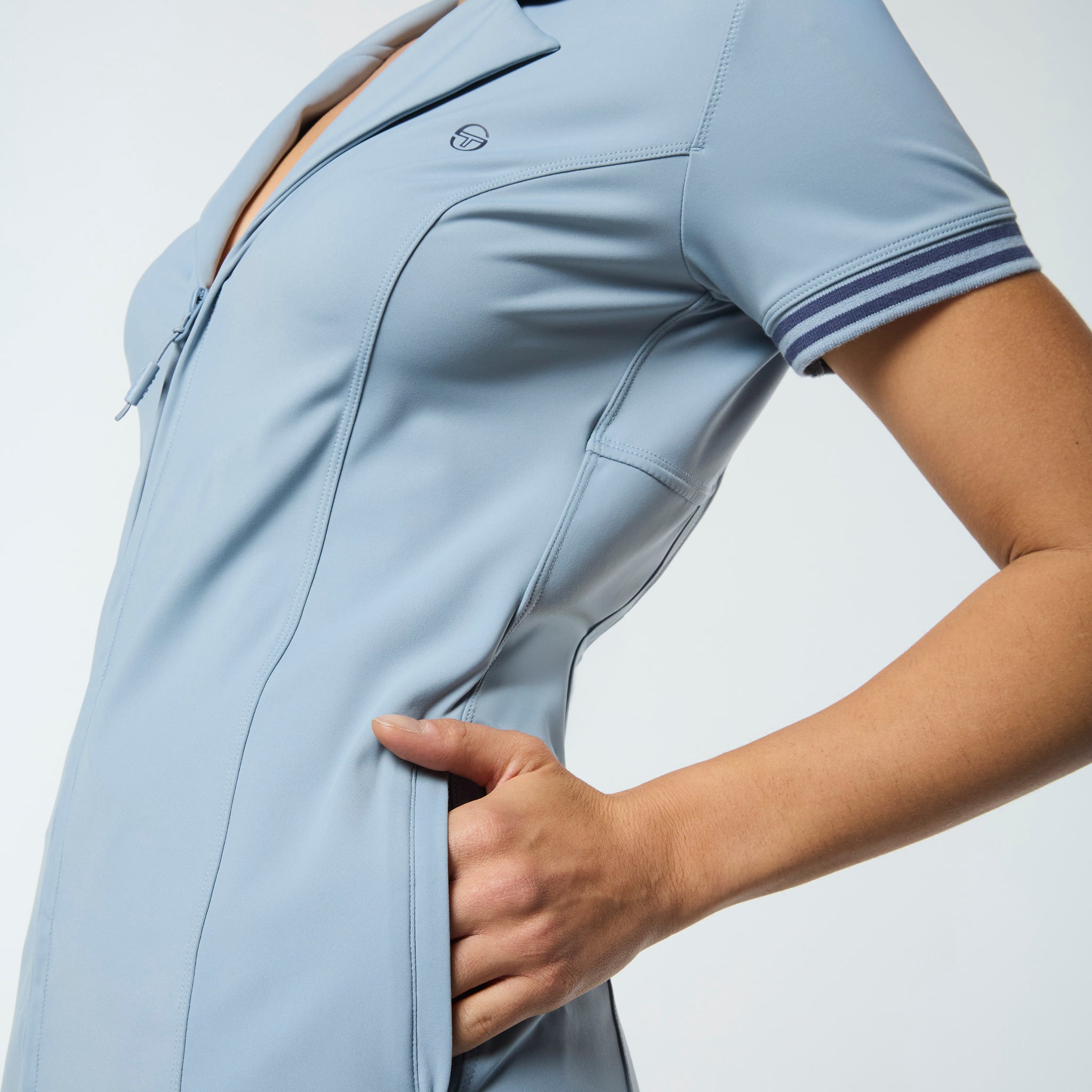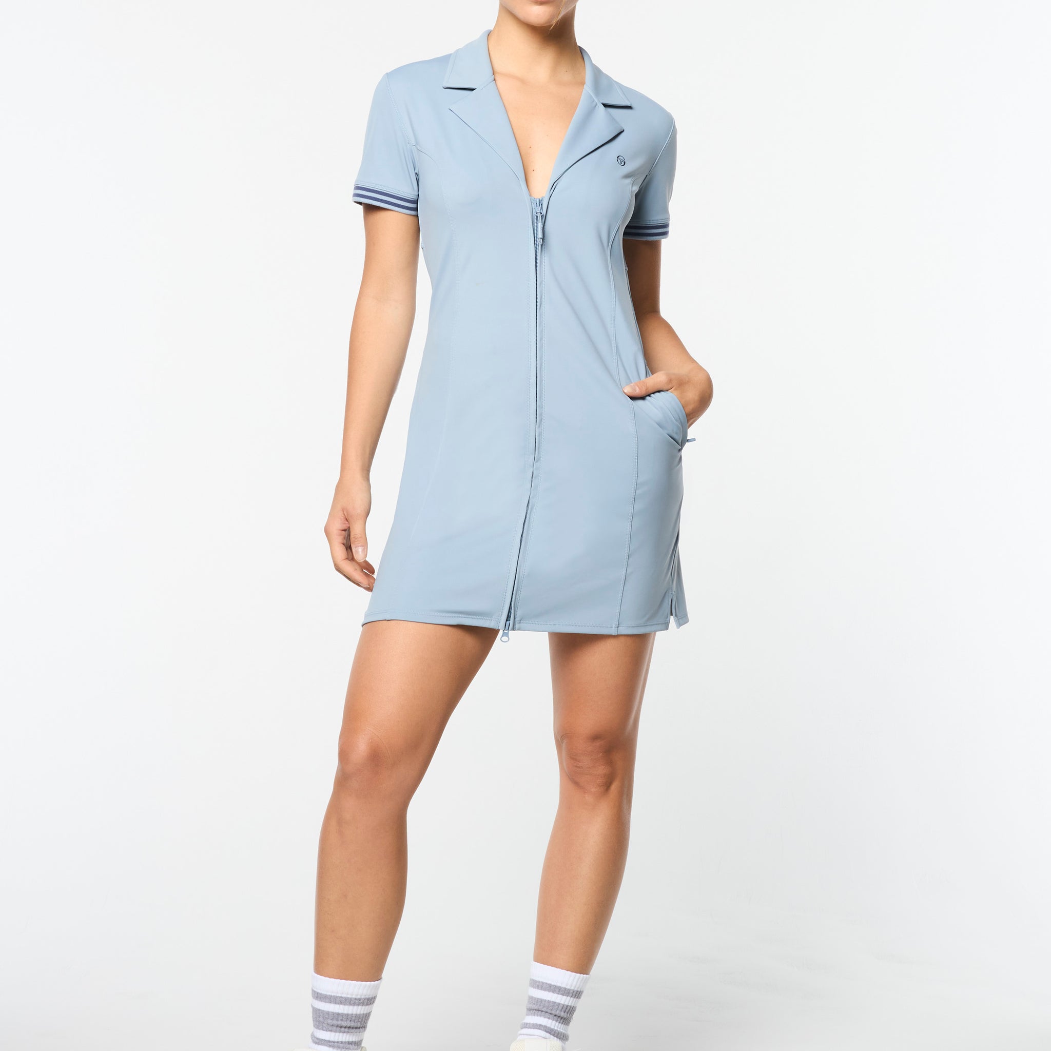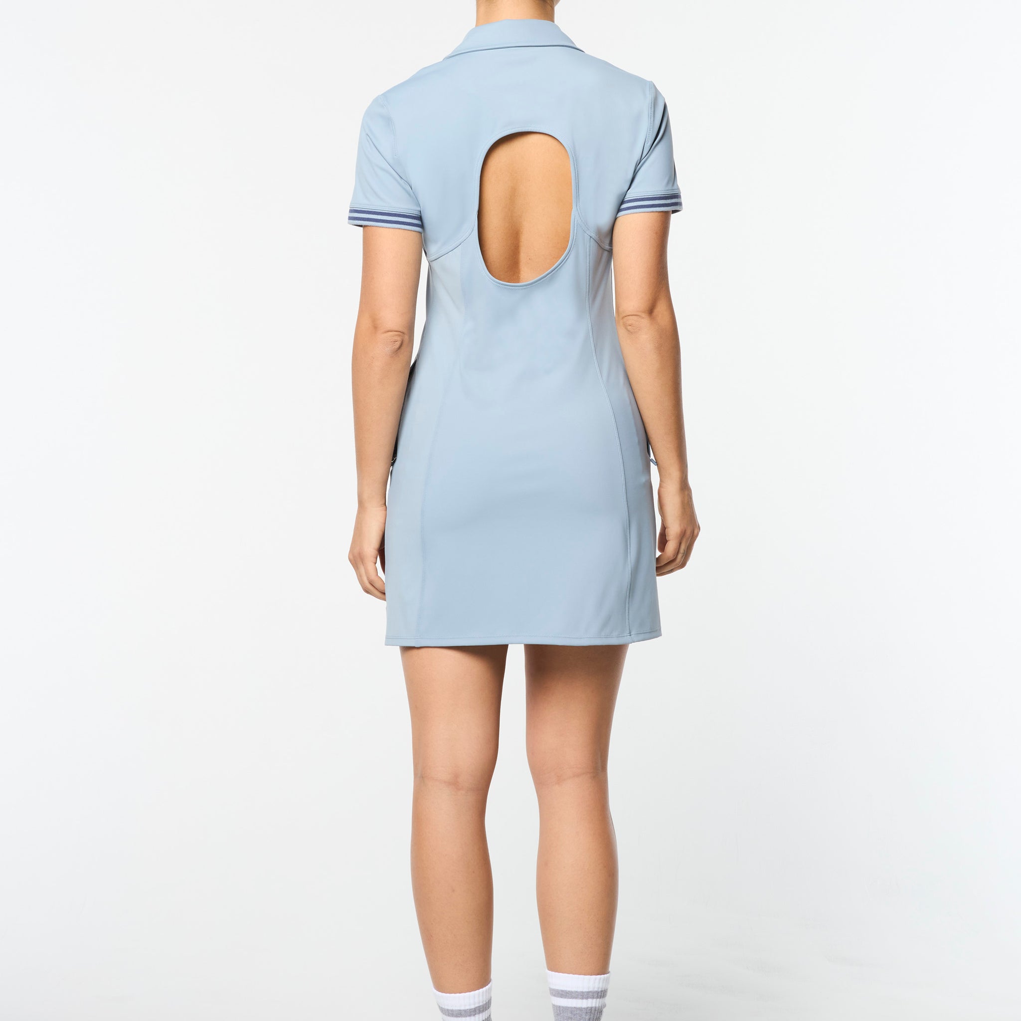 Elevate your fashion game with the Silvia Dress, crafted from buttery-soft performance stretch fabric that’s stylish, practical, and made to move with you through any practice. Topped with a notched lapel collar for a touch of class, this elevated tennis dress features a circle cutout at the back and princess seam detailing down the front making it perfect for evenings out.