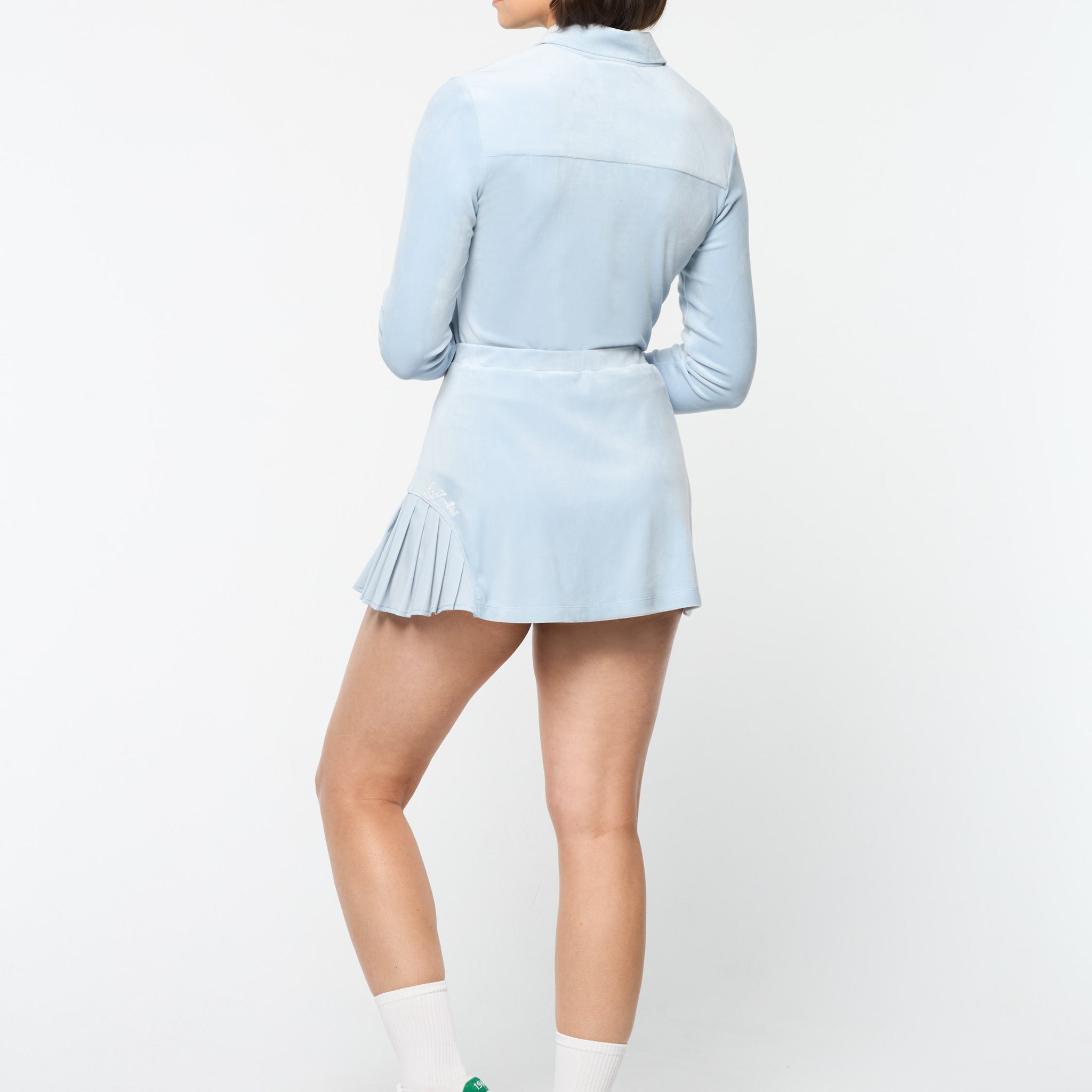 Crafted from ultra-plush velour, the Veneto Mini Skirt features contrast double stripe accents and a flowy pleated nylon panel for a playful twist on varsity athletics and cheerleader fashion. Finished with an embroidered Sergio Tacchini script logo at the rear, this luxe skirt is part of our seasonal “New Ivy” capsule—a contemporary take on collegiate prep aesthetics.