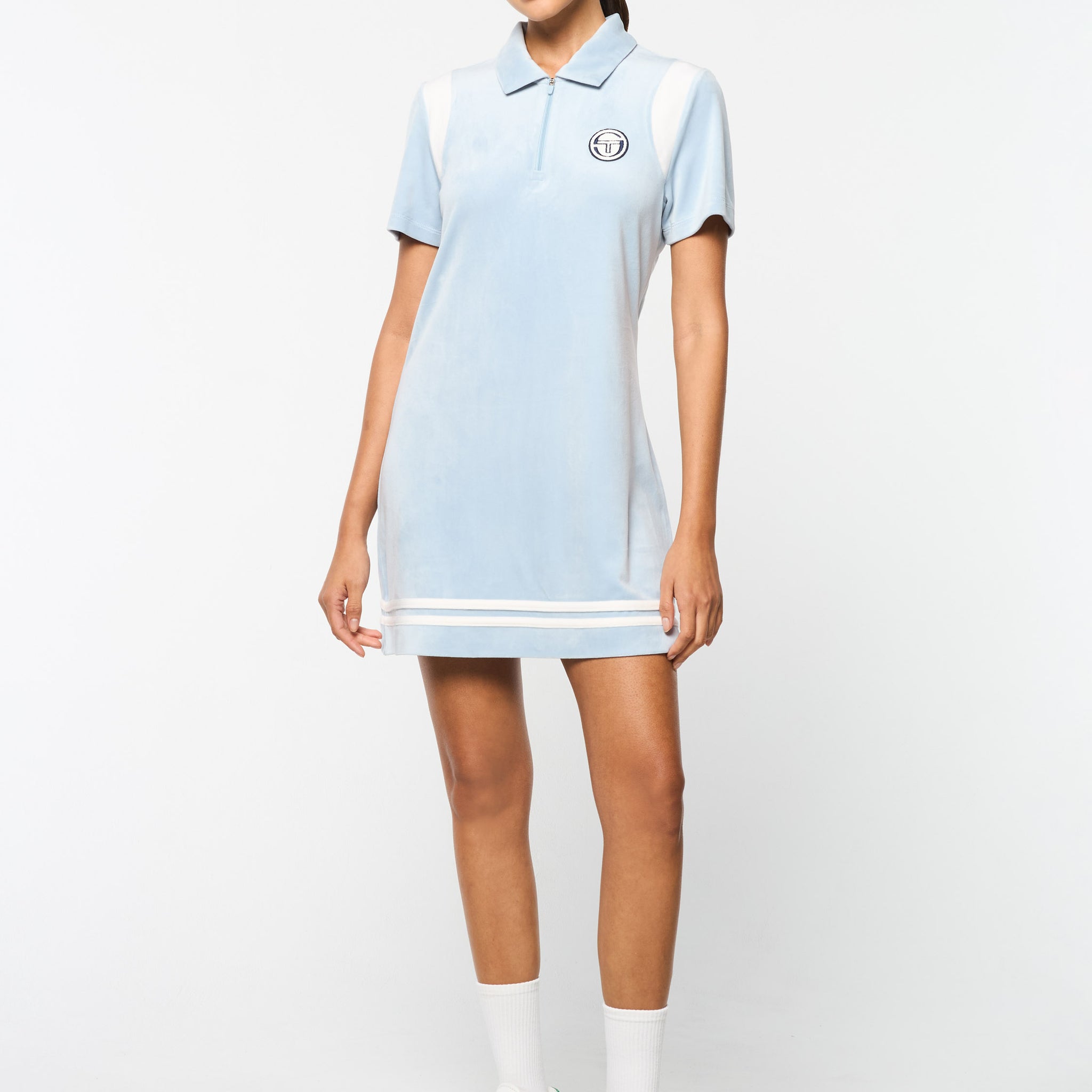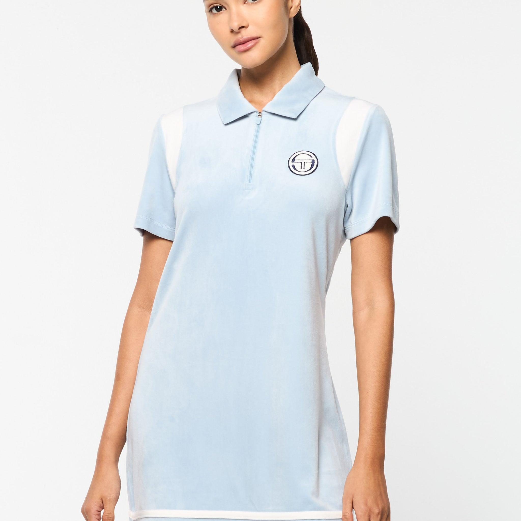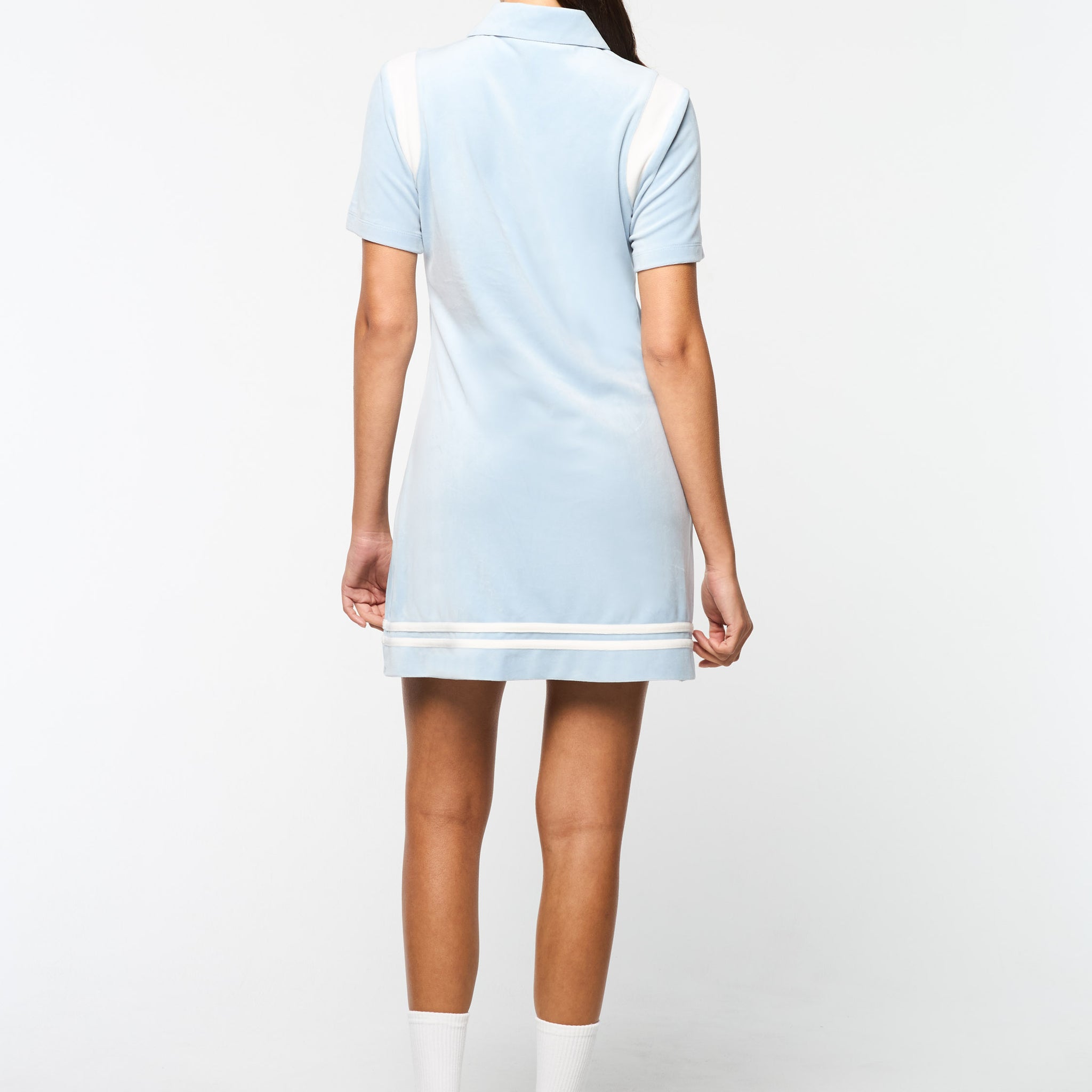 Crafted from ultra-soft velour, the Veneto Polo Mini Dress features a plush chenille ‘ST’ monogram patch and contrast stripe accents for a playful twist on varsity athletics and cheerleader fashion. Topped with a zip placket for easy venting, this luxe dress is part of our seasonal “New Ivy” capsule—a contemporary take on collegiate prep aesthetics.