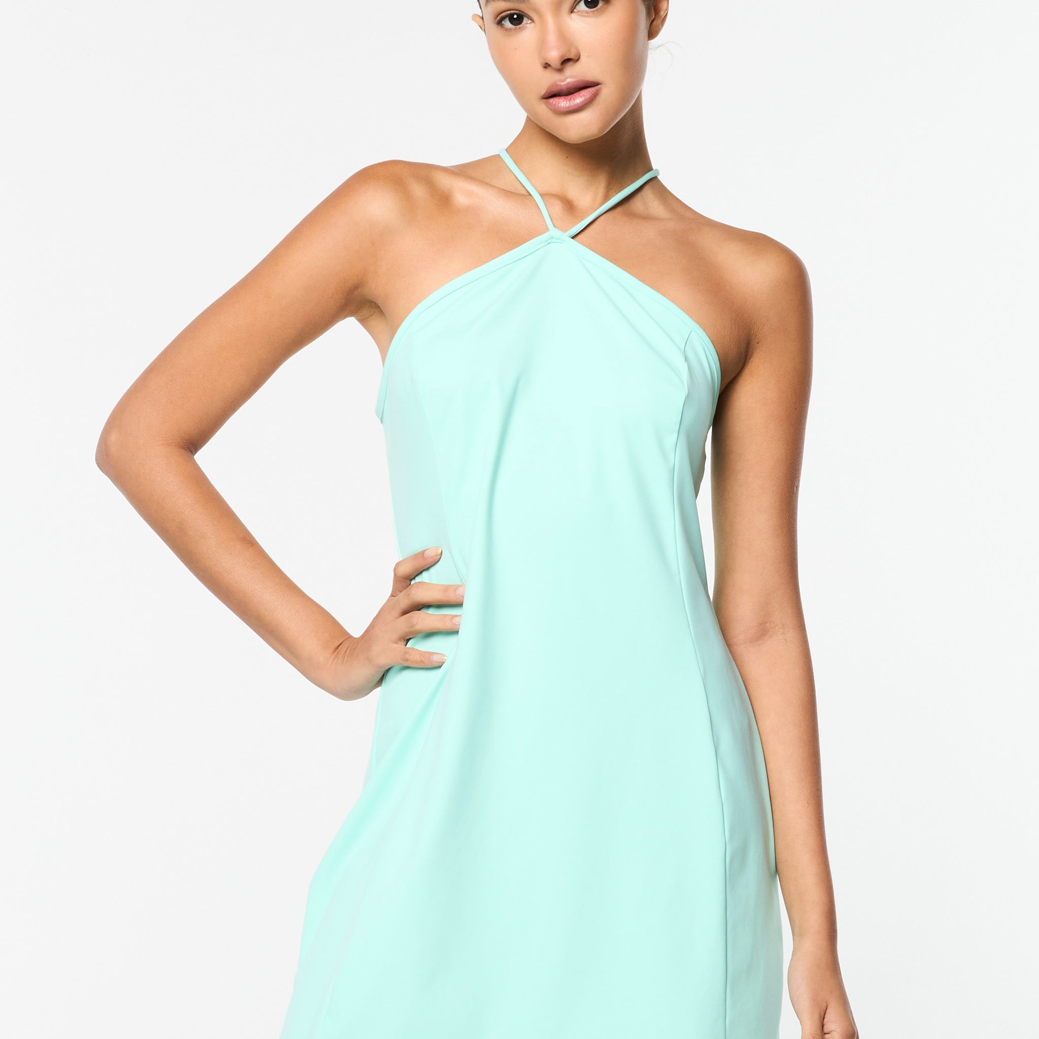 Fashion-forward and functional, our Verona Dress is crafted from buttery-soft performance stretch fabric in a flattering halter silhouette with princess seam detailing down the body. Lightweight and breathable, this elevated athleisure dress is complete with elegant adjustable straps to keep you moving freely through workouts and beyond.