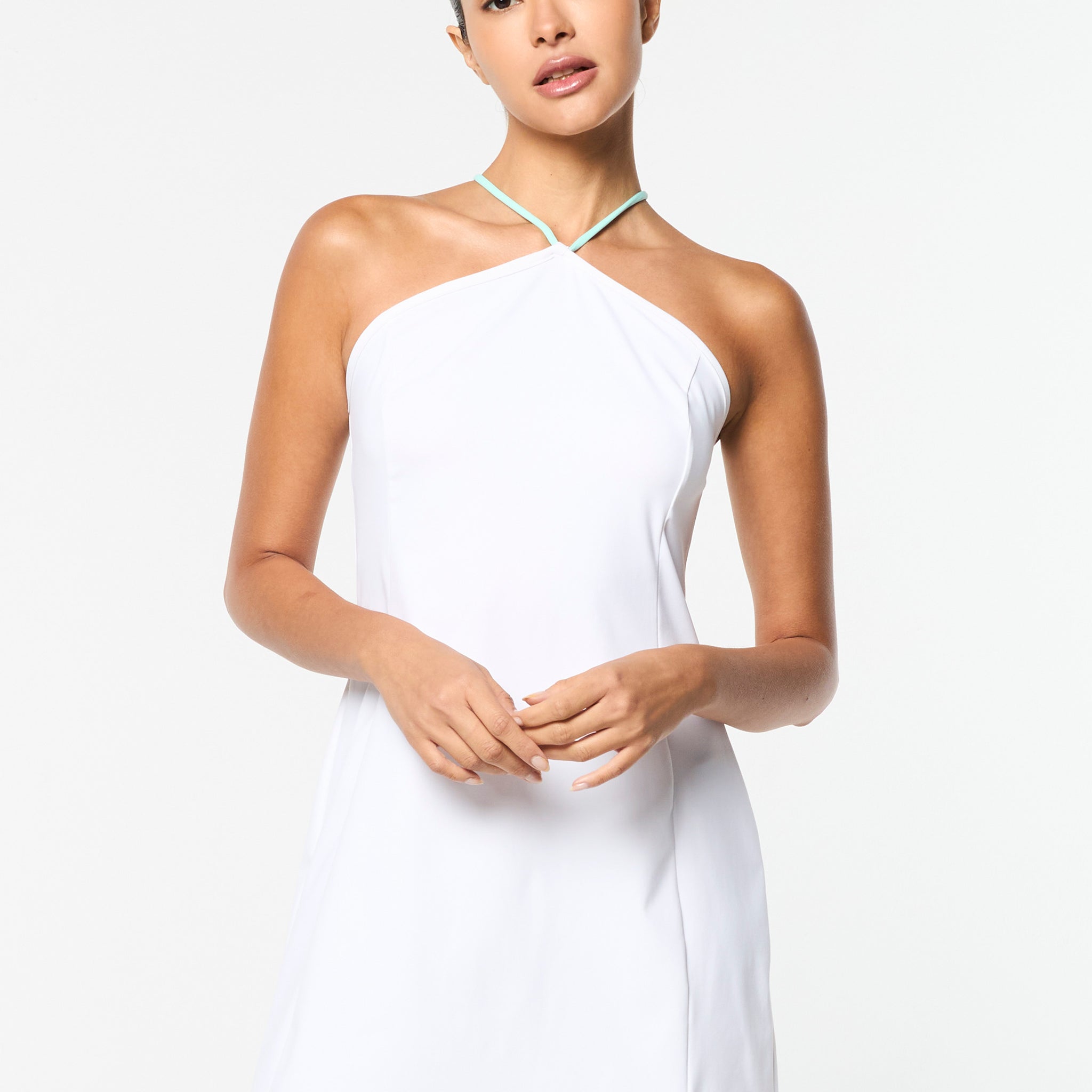 Fashion-forward and functional, our Verona Dress is crafted from buttery-soft performance stretch fabric in a flattering halter silhouette with princess seam detailing down the body. Lightweight and breathable, this elevated athleisure dress is complete with elegant adjustable straps to keep you moving freely through workouts and beyond.